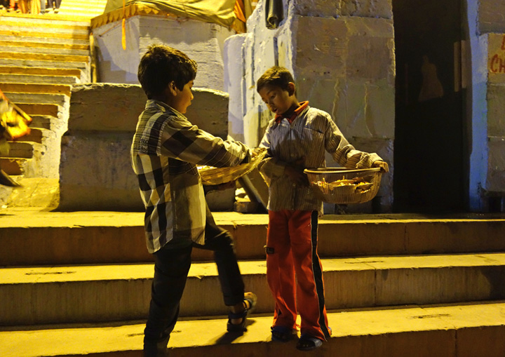 Odd assortments of products like cigarettes, and incense sticks along with packs of chips and pens are sold by old women on the Ghats. Free spirited tourists sit in groups and play unusual music or are busy working with beggar children on the streets in the hopes to help them.