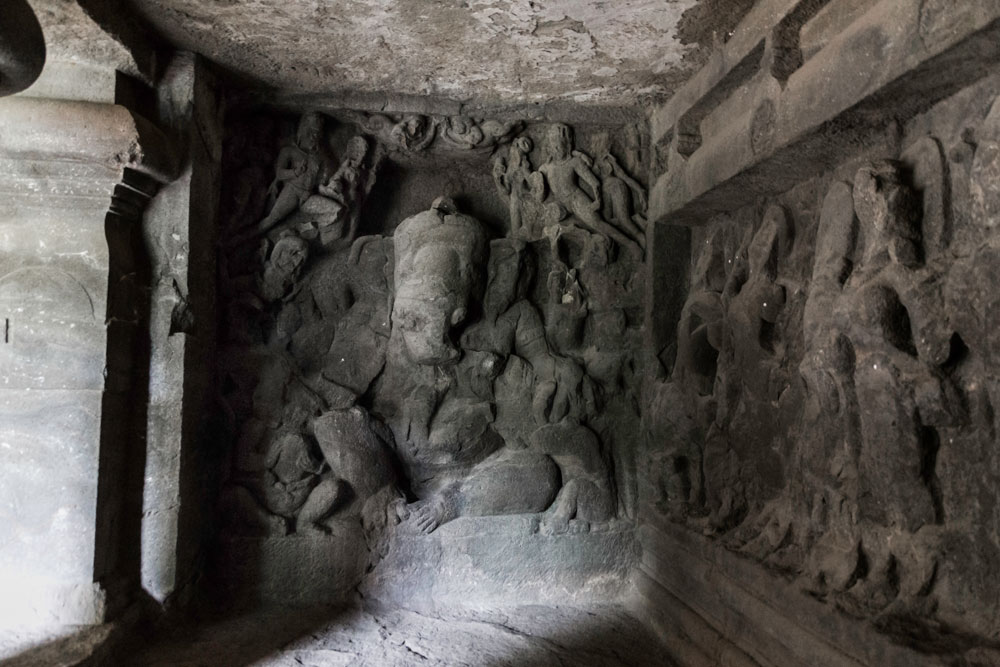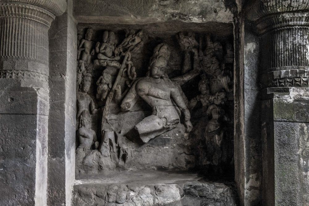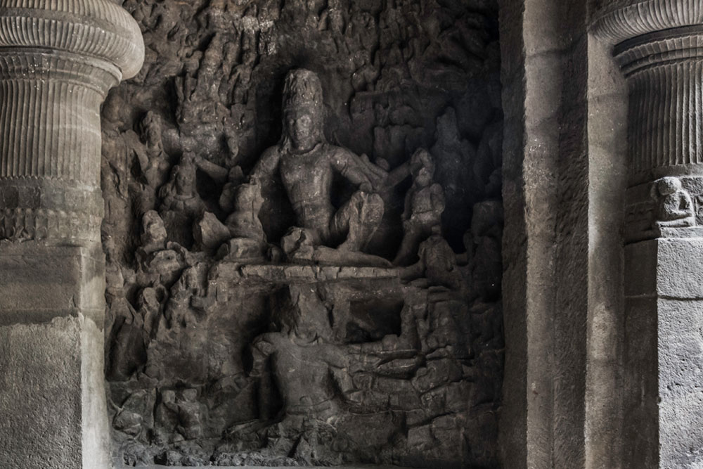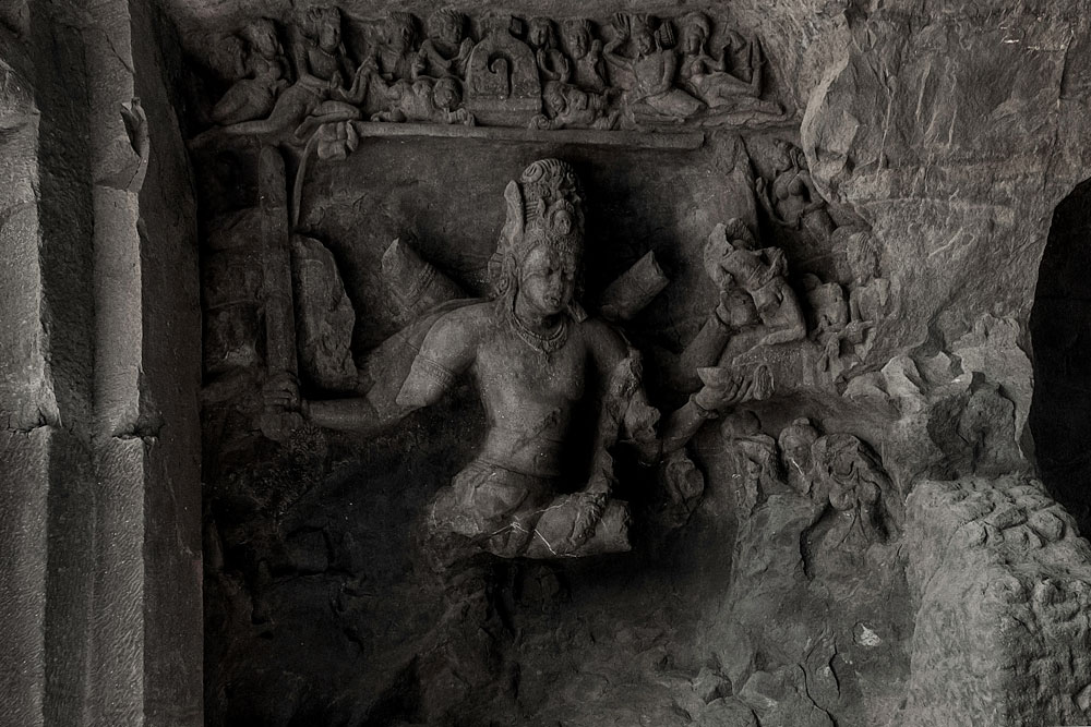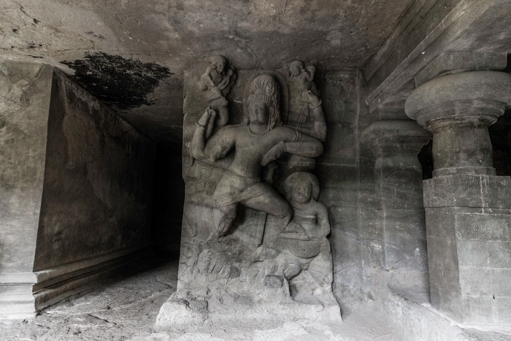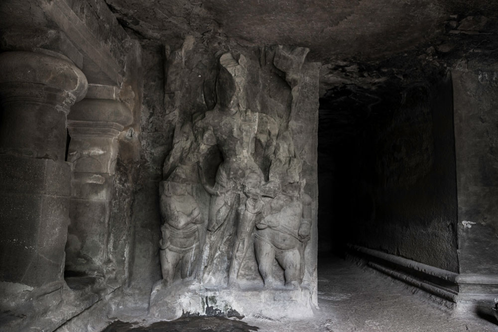 Elephanta Caves are divided into two groups - one larger group with 5 caves all of which are dedicated to Shaiva sect and the other one is the smaller group dedicated to Buddha. The rocks are made of solid basalt. They were painted in past but only traces of paint are left now. The main cave, containing the sculptures of Lord Shiva in different forms and acts, was a place of worship for Hindus until Portuguese came in 1534after which the caves suffered severe damage. In 1970s Archaeological Survey of India (ASI) started the renovation work. The Main cave which has 13 panels depicting various acts of Shiva, most famous of which - Trimurti has been adopted by Maharashtra Tourism in their logo, benefitted most from this renovation work done by ASI. Other caves are still in a terrible state. Prayers were performed here in ancient times and even today people gather to pray to Shiva on Mahashivratri.