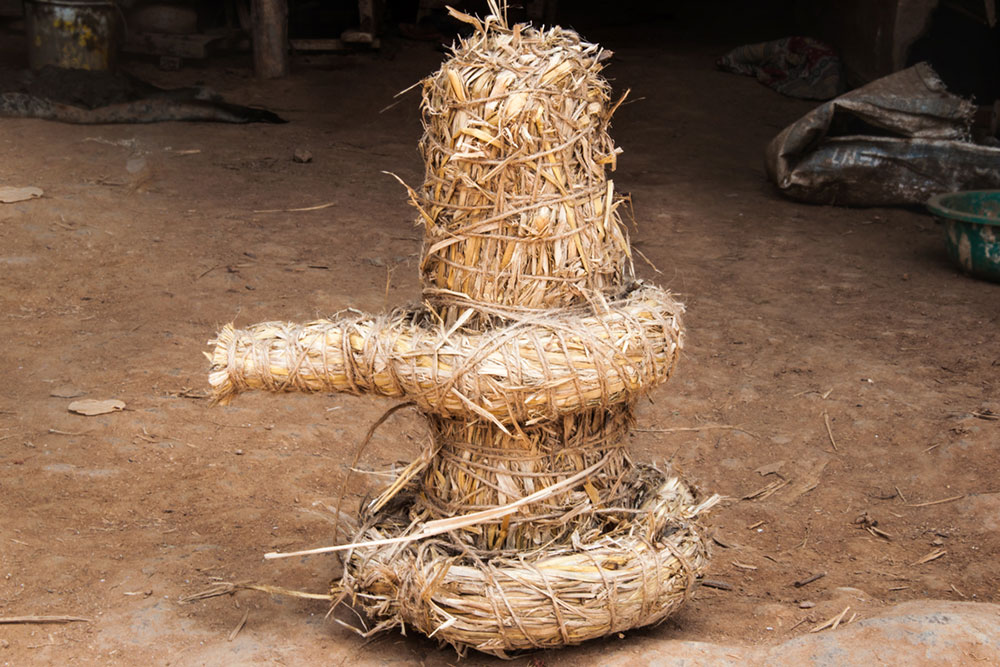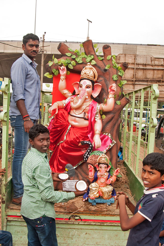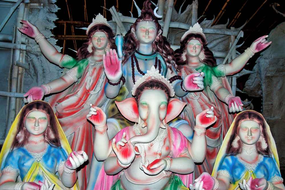 The idol is sculpted out of mud taken from nearby one's home. After the festival, it was returned back to the Earth by immersing it in a nearby water body. This cycle was meant to represent the cycle of creation and dissolution in Nature.