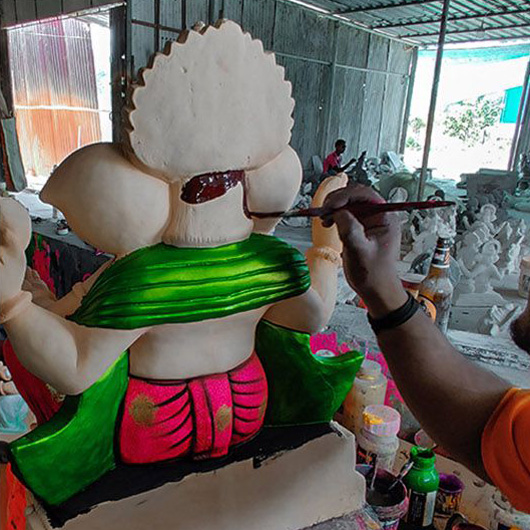 • Plaster of Paris (PoP.): The PoP idols are not easy to make, but as a material, it is sturdier and lighter and can be used to make idols up to 5 feet in height.