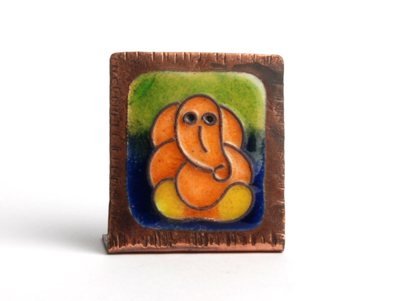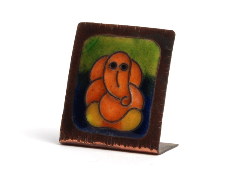 8. A decorative brass stand (approximately 50mm in height) with a 2 dimensional Ganesha image. The rich colours are created by enamelling.