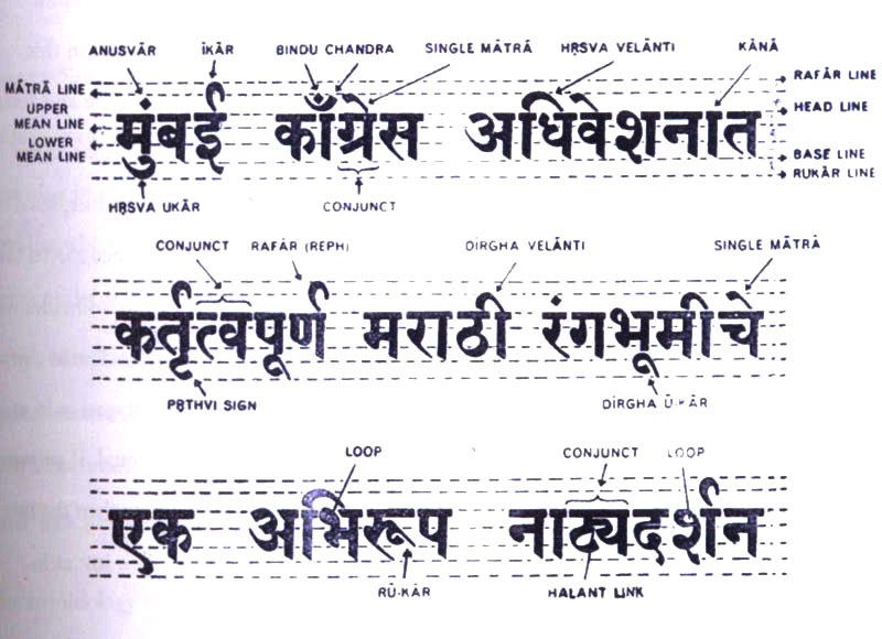 The Roman letters were categorized according to ascender, descender, serifs, counter, loop etc. But Devanagari letters till then had not been subjected to such a graphical analysis. One of the first attempts toward a graphical classification was done by S.V. Bhagwat (1961) in his thesis. Bhagwat’s main insights on the graphical structure of Devanagari are enlightening.