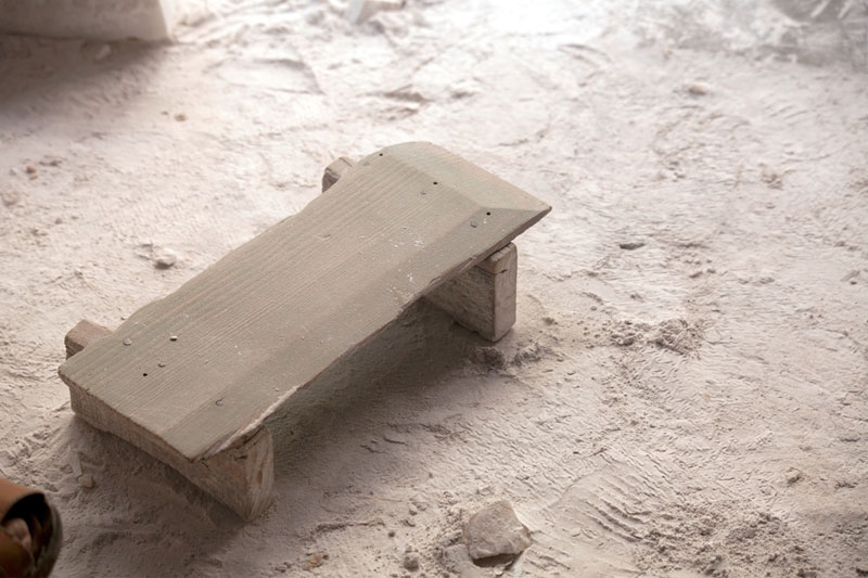 This is used to blow away the stone dust from the statue especially from those parts where the brush cannot reach or when dust collects on the inner parts of the statue.