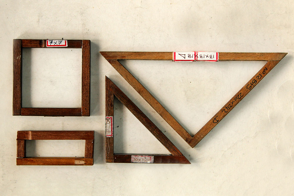 • Wooden Frame Templates: Wooden frames of different shapes and sizes are used as Templates for the designs.