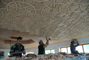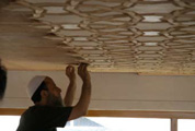 Khatumbandh is an art of making ceilings, by fitting Khatumbandh in Kashmir small pieces of wood (preferably walnut or deodar wood) into each other in geometrical patterns.