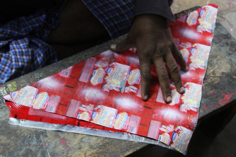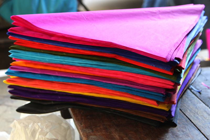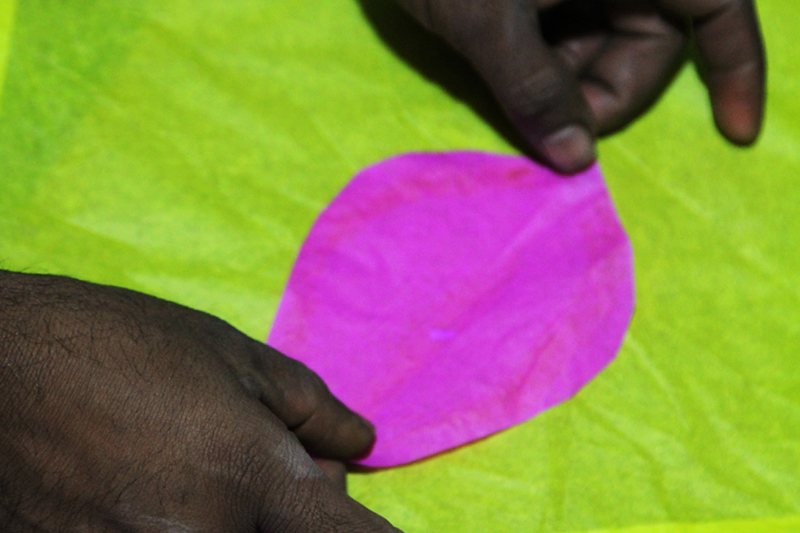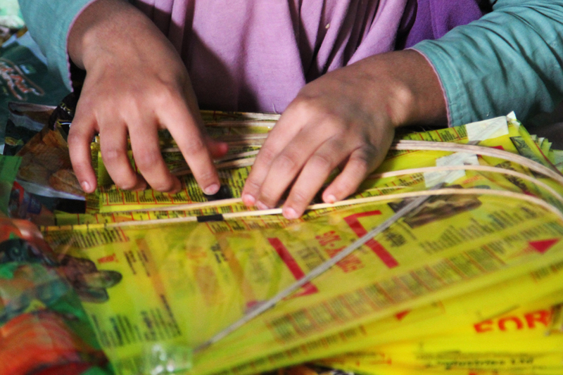 The kite papers used in making kites are purchased from Delhi, locally known as “Thirveni”, are very light weighted. One bundle of kite paper consists of 190 sheets.