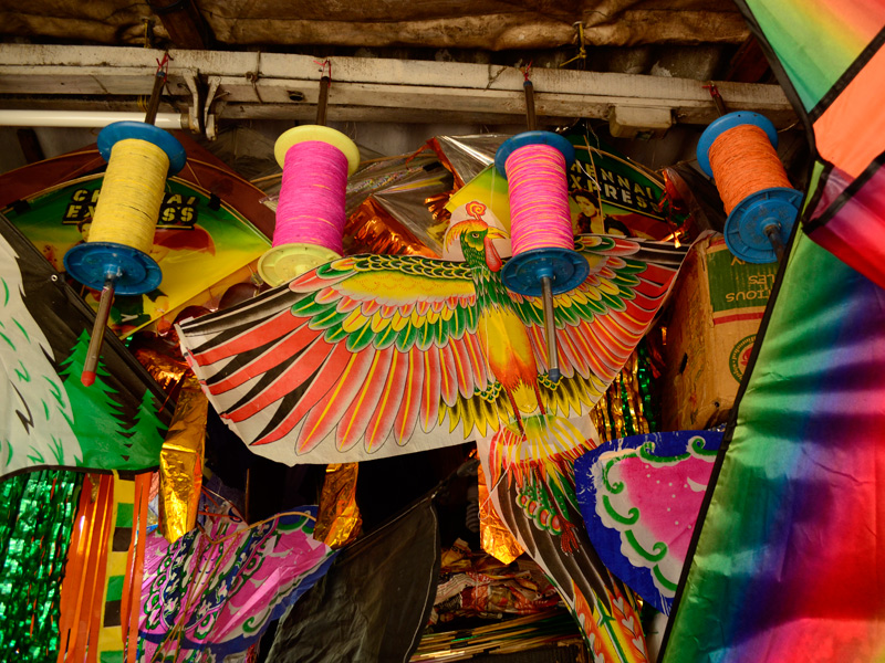 The manjha allows the kite to be cut off effortlessly from the sky. It is a paste made from sticky rice and powdered ground glass.