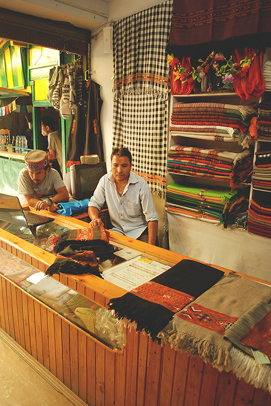 Sunil Dutt, member of Great Hadimba Co-operative Society, operates his store from the Old Manali. Nepali resident Gopal works here as a craftsman and travel back to his country in off-season.