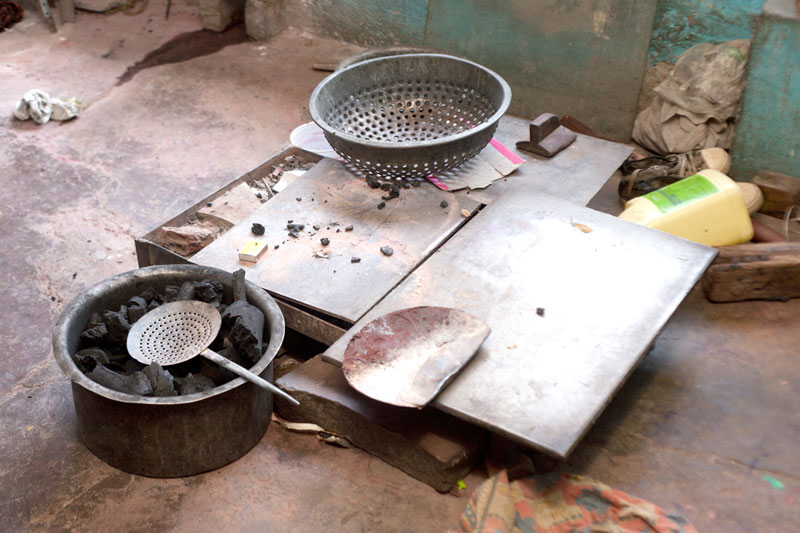 Tools used in making bangles are simple and mainly wooden based. Earlier shagwaan wood was used but now the tools are made in any low coat wood. Artisans buy these tools from the local market directly.