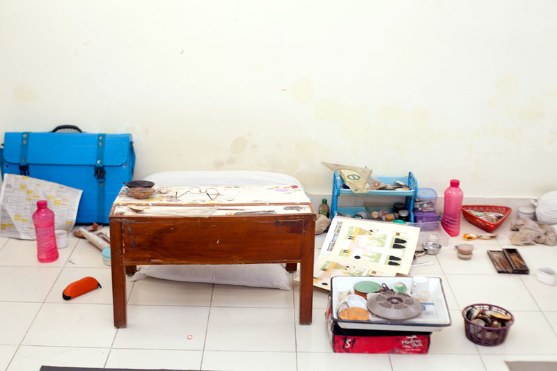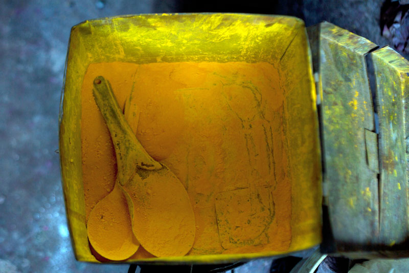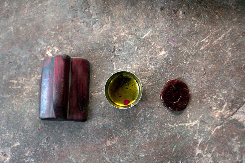 To grind the colors and in order to make it into powder grinding-stone is used.
