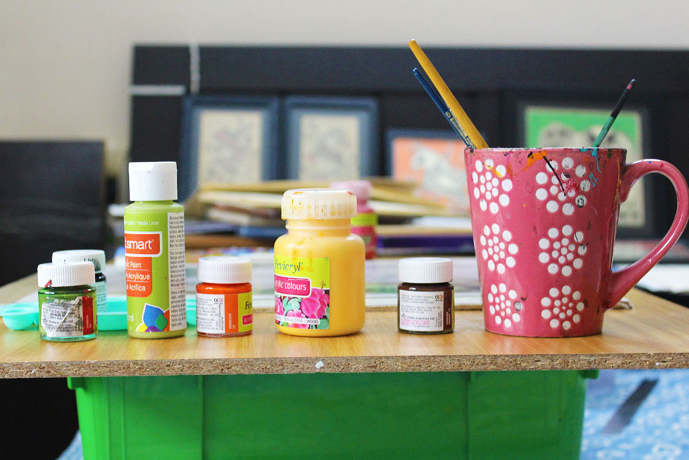 • Acrylic Colours: It is used to paint on handmade paper or canvas cloth.