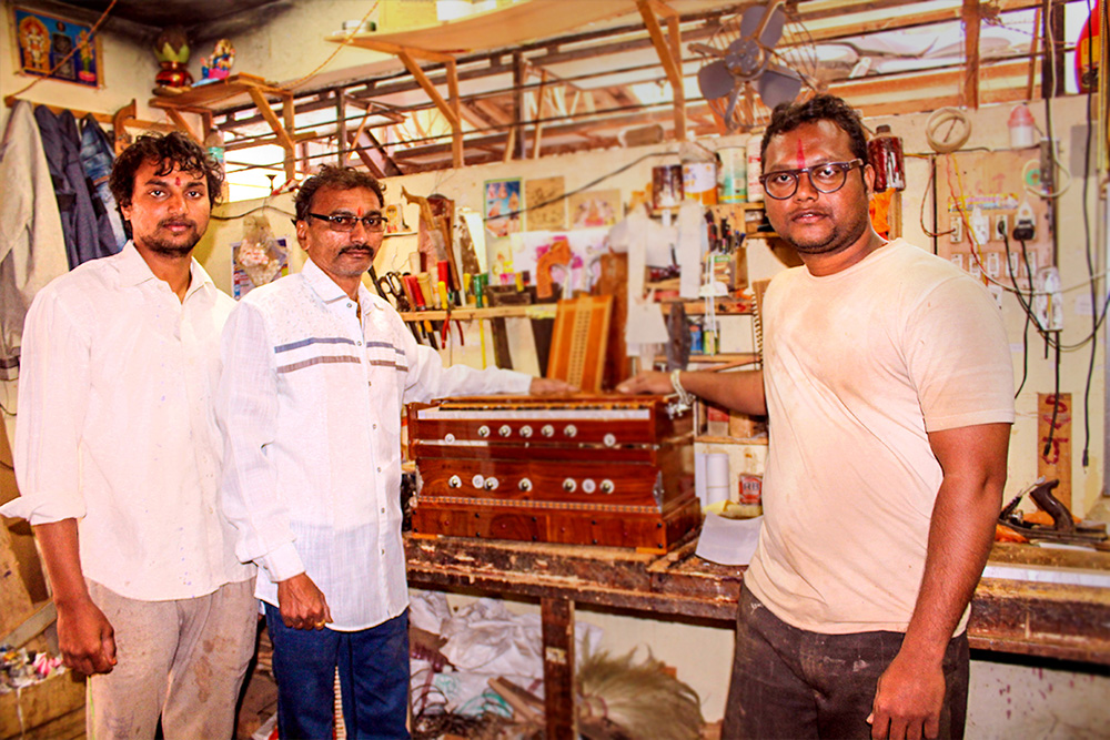 In India, Harmonium comes in a small portable box size which is a key tool in teaching students the rudiments of music and songs. The instrument that got introduced to Indian music from Calcutta now enjoys a principal instrument in rural folk songs, semiclassical and classical music, ghazals, kathak, thumri, khayal, qawwali, and other ancient Sufi tradition as well, practiced across the country. Out of the many types available in the market, like Compact Harmonium, Harmonium with Coupler, Scale Changer Harmonium, Samvadini Harmonium, Samvadini Harmonium is the one upgraded from the traditional form and improvised with a ‘swarmandal’ (harp-like box). It renders cut notes and high-speed passages, thus giving a full sound pattern. Om Nada Brahma is a harmonium manufacturing center based in Ahmednagar, where different kinds of harmoniums are produced and traded for many decades. Prashanth Subha Jadhu is the proprietor cum senior artisan at the center who runs the business efficiently.