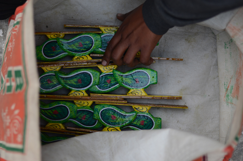 Selecting the right kind of wood for toys is very important. ‘Kemah Chilbil’ and ‘Haldu’ wood is used for making toys but they largely use Chilbil. The kind of toys they make depends on clients. Like butterflies, elephants etc., decorative articles like wall hangings, photo frames and jewelleries like earrings are also made by them. But one of the most famous toys made by these artisans is “The Parrot-Toy”, which is adapted in different styles. The complete process of this famous toy “Parrot” is discussed in next sections.
