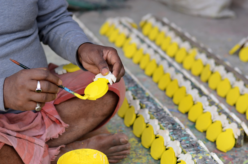 They do not sell the toys directly in market. They make toys on order by a contractor in bulk, using a sample provided by the contractor, who pays them for cutting and filing. They take orders from foreign clients, who give them designs and then fabricate for them.