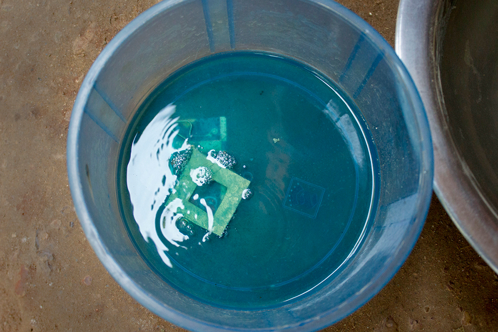 Nitric acid solution is mixed with water in an appropriate ratio in a bath then the prepared jewelry immersed in that solution for few minutes. This solution dissolves the unwanted marks on the surface of jewelry. This test gives the brightness to the jewelry. Later the jewelry is taken out from the nitric acid solution then washed in plain normal water.