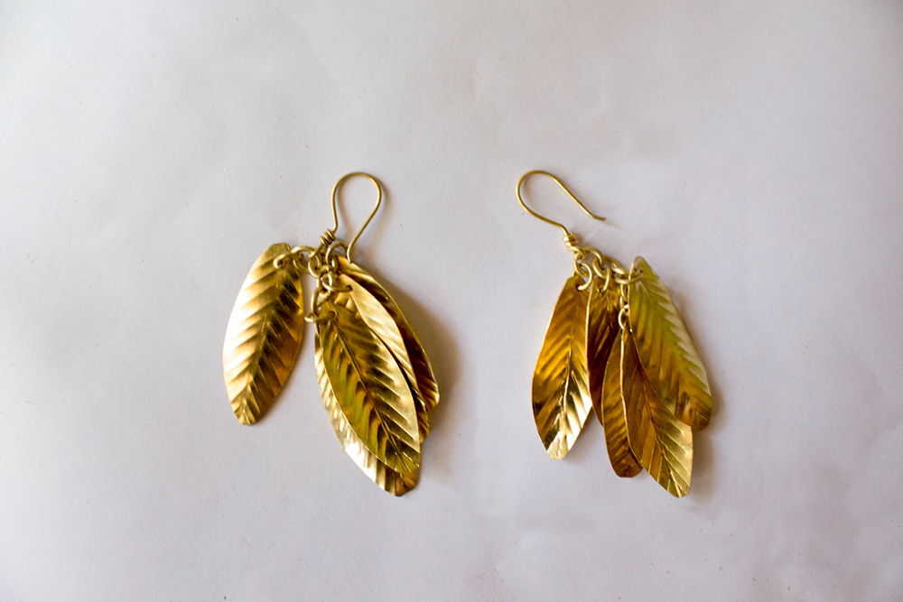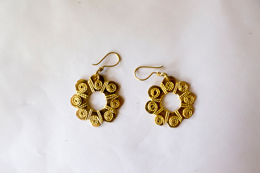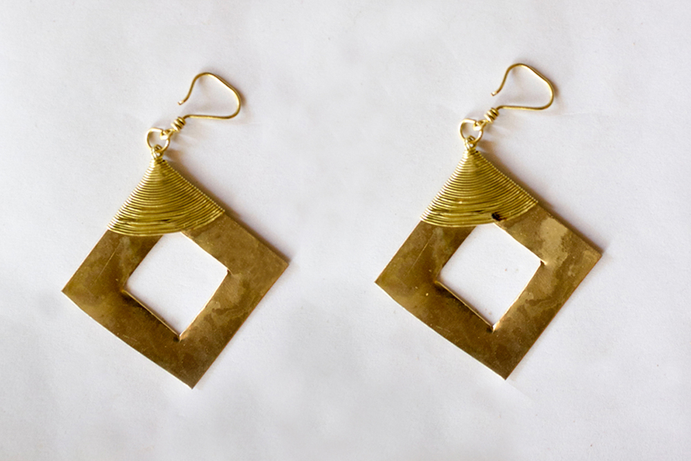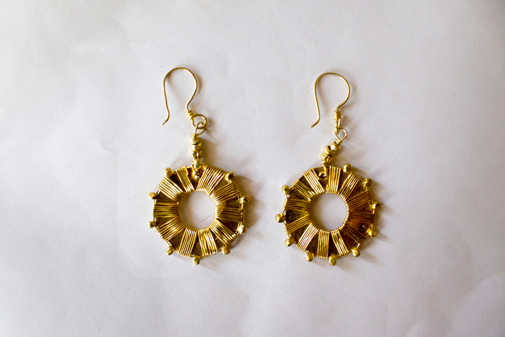 Varieties of earring are made namely wheel shaped brass earrings, twisted spring brass earrings, leaf earrings, square brass tribal earrings, spiral shape earrings. The price will be depend on the design.