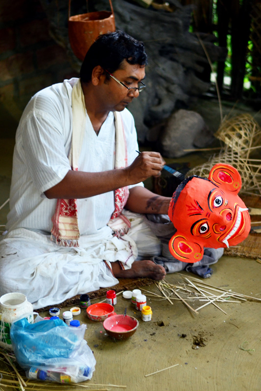 Process of Mask Making goes though following stages: • Bamboo Work • Skin Making and • Coloring Bamboo Work: