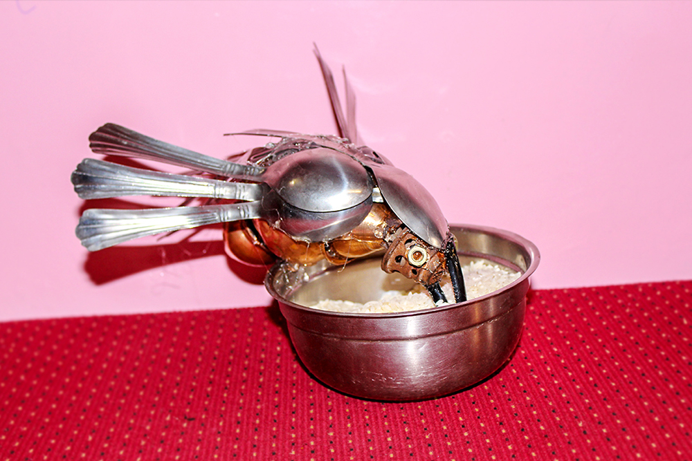This type of metal art is regarded for its uniqueness and innovation across the globe, as it is a rare form practiced at selected places. As it doesn’t conform to mass production, each product made here is different from one another and is totally handmade. The size of the metal spoon made by Mr. Balaji Valla ranges from 1 foot to 2 feet, and their cost hovers between 7,000 INR and 8,000 INR. Though the production of new forms and experiments on modern styles are under consideration, currently, he concentrates only on spoon birds of various sizes and shapes.
