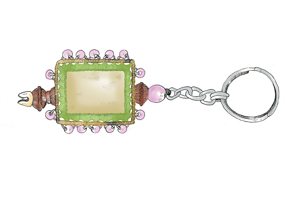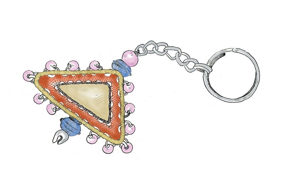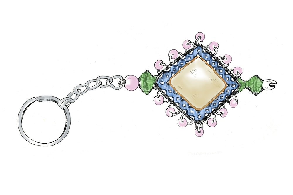 Mirror key chains with contrasting colours of beads and threads are generally preferred for its making. The size varies as per the style and the length of the pattern required. The cost of the key chain varies from about Rs 40 to Rs 60. Based on the size of the mirror, the type of design and the cost of the mirror key chain vary. This is one of the unique products specially made at Bijapur, Karnataka.