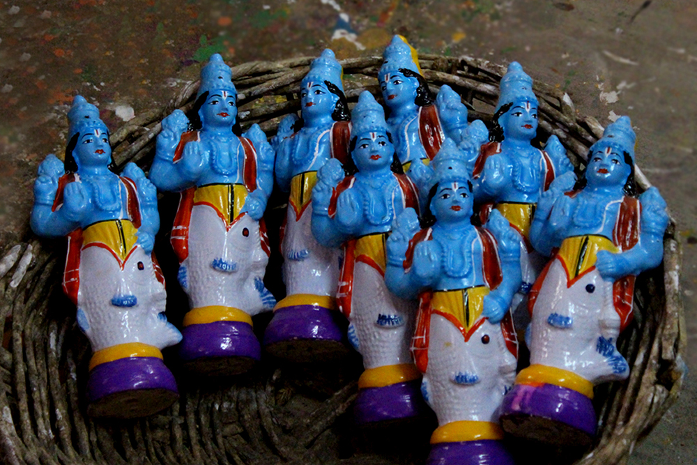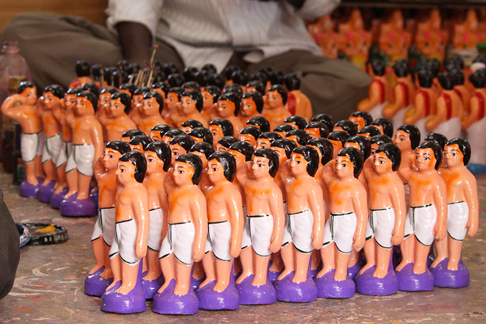 The mud toys made are usually depicting Gods and Goddesses from epics and puranaas of Hindu mythology like Ramayana, Mahabharata, different forms of Lord Krishna, and popular festivals like Jallikattu, events like a wedding ceremony etc.