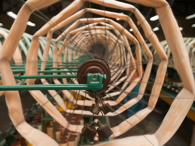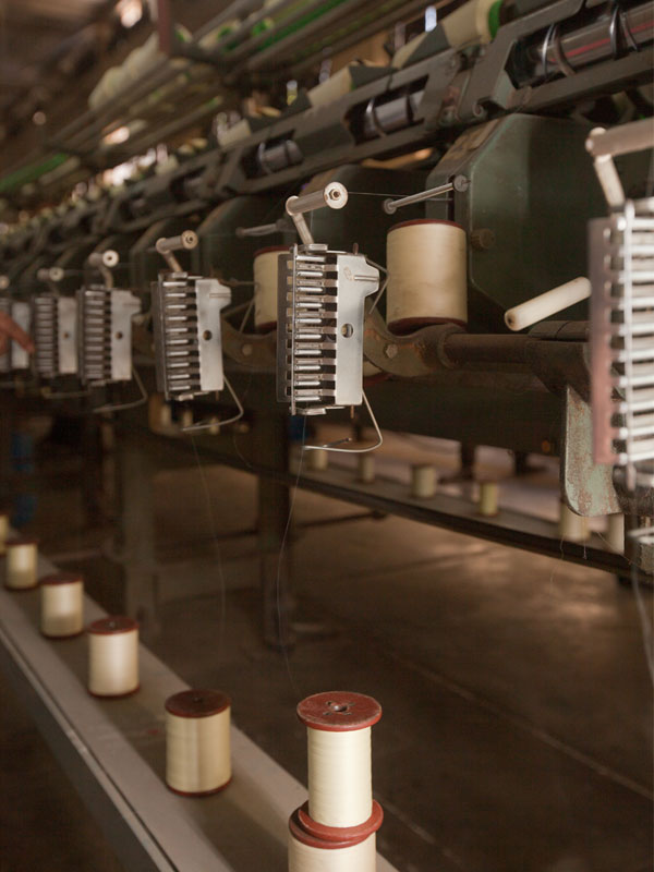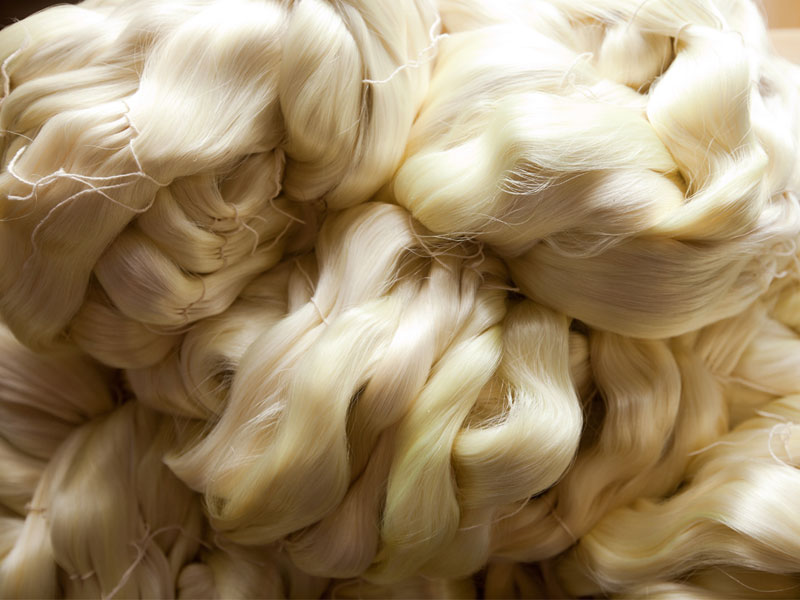 Silk filature refers to raw silk manufacturing unit. The raw silk yarn filatures are obtained from the T. Narasipura factory, 25 kms away from the Mysore silk saree making factory. A single cocoon produces 800-900mts. of yarn, but usable yarn is only up to 400-600mts. The remaining yarn is used to produce Kashmiri carpets and is auctioned. The dead pupa remains and from it protein is extracted and used to make dog biscuits and lipsticks. They are sold for as less as 5-10 rupees for a kilogram. The unit manufactures raw silk yarn and transfers it to meet the raw material requirement of silk weaving factory in Mysore. The linear mass density of silk fiber is measured in units called dernier. The Mysore silk factory deals with 26-28 denier of the silk thread.