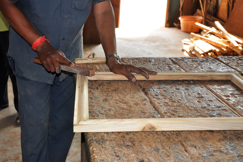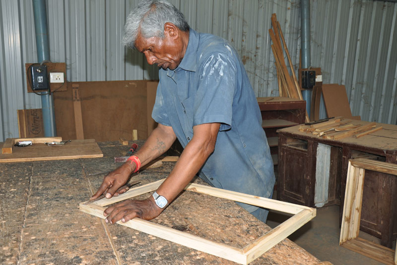 First the wood is cut into required size and a rectangular frame is made. The frame is smoothened using sand paper. The frame also coated with several coats of luppa paint.