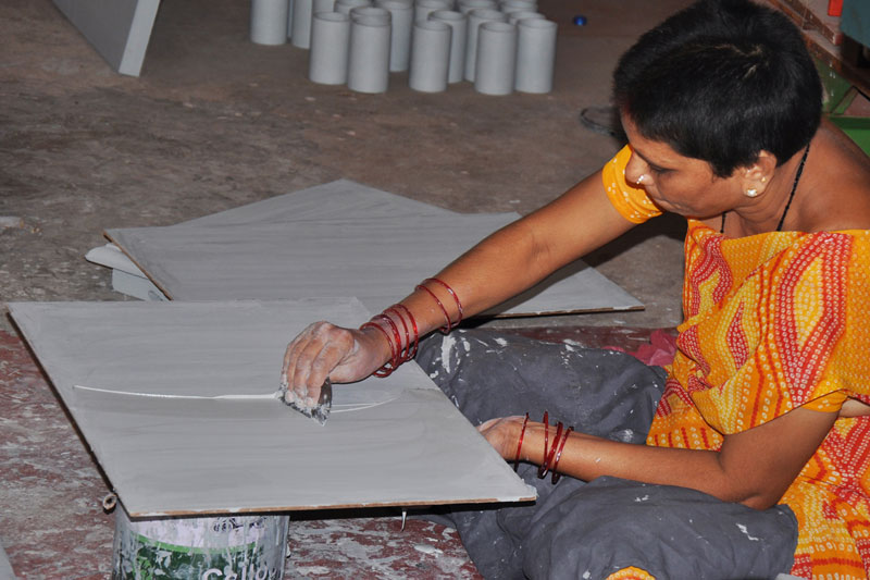 Before Painting, the artisan prepares frame of different sizes as per the estimated size of final paint to be painted.