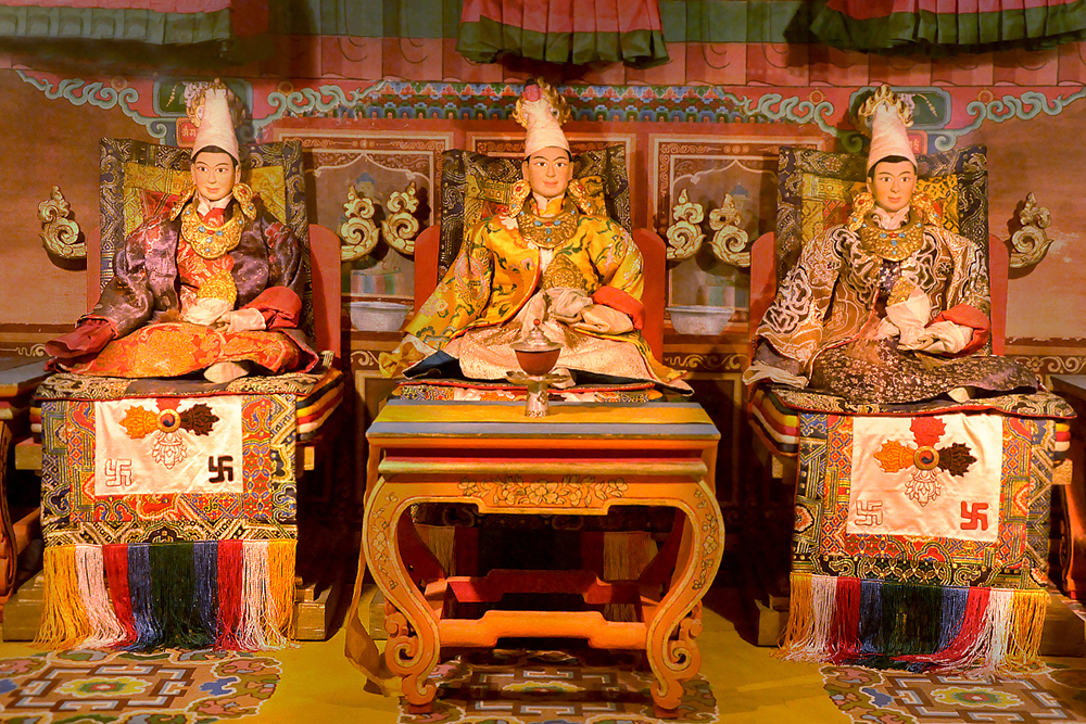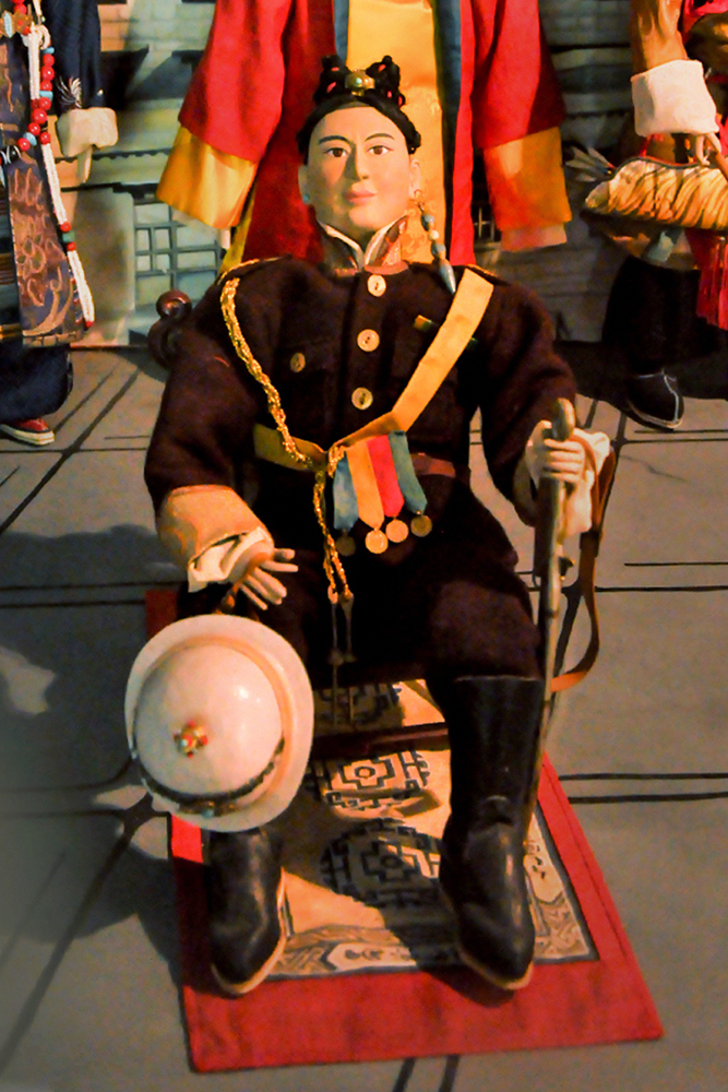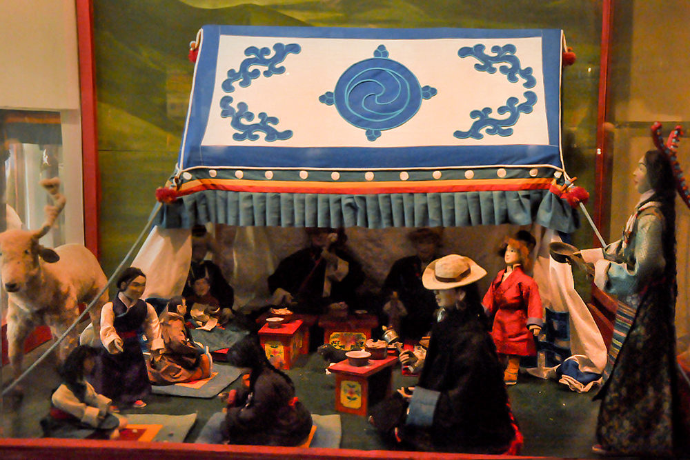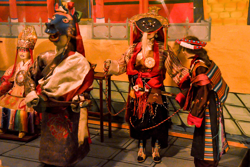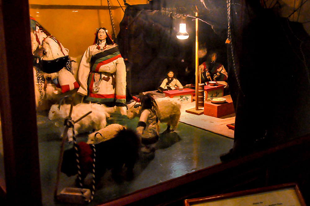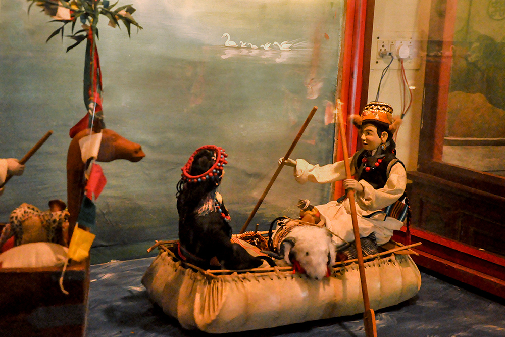 The museum houses over 160 costumed dolls which were created by a group of artist monks from Drepung Loseling Monastery. Describing doll’s making, the body is first constructed with wire and paper mache, later hands made of cast metal are affixed. The heads are sculpted of fine clay, the face painted and hair attached. Then they are dressed in tailored clothes of cotton, wool, and silk. Eventually, jewelry and accessories are put onto the dolls, giving them a final touch.