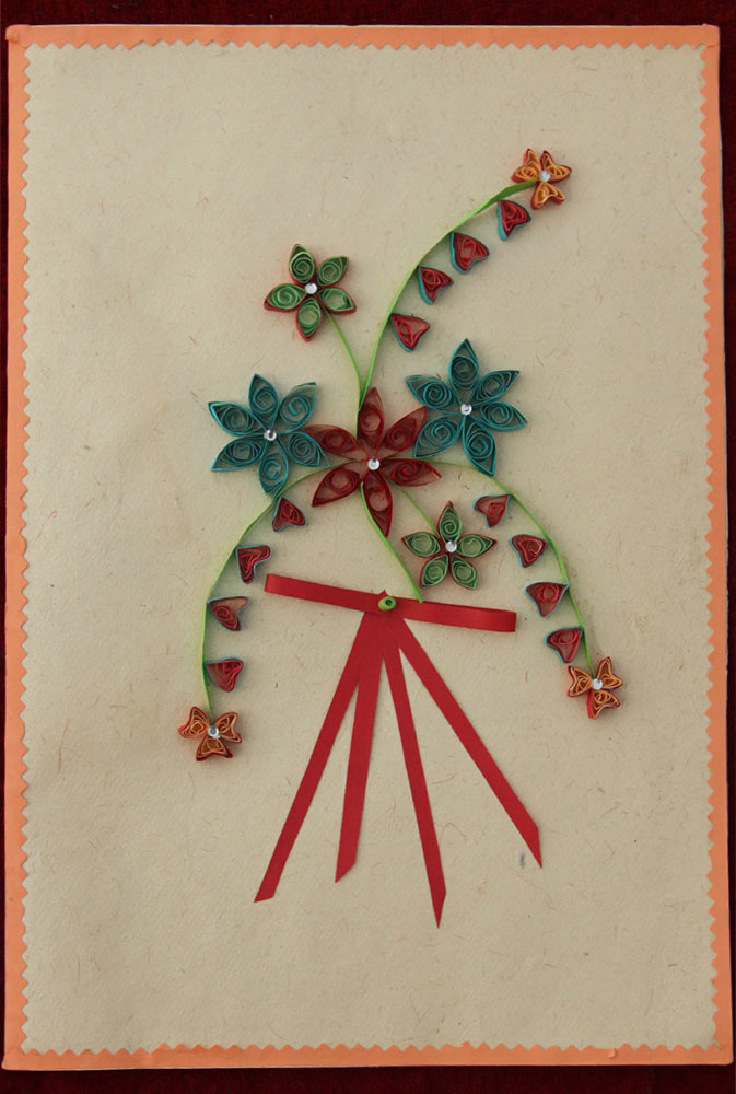 Quilling is one of the crafts or the art form which is found to be mostly done by the homemakers / Ladies, in some cases by the gents after completing their regular routine work. It is a craft that is usually made with the help of cut papers of about ¼ inches in width. It is glued on the handmade papers with the help of the patterned designs as per the pattern to be made.