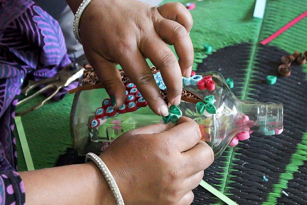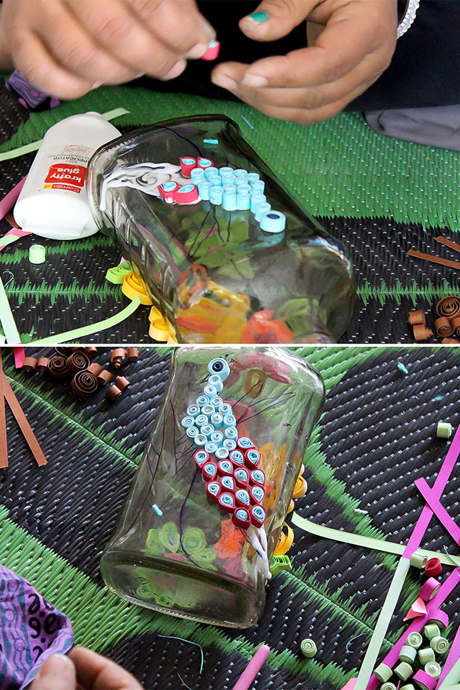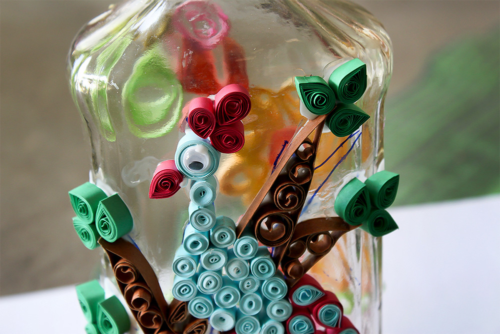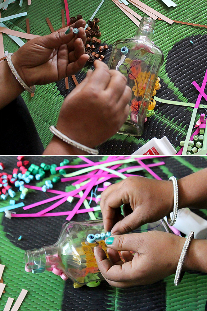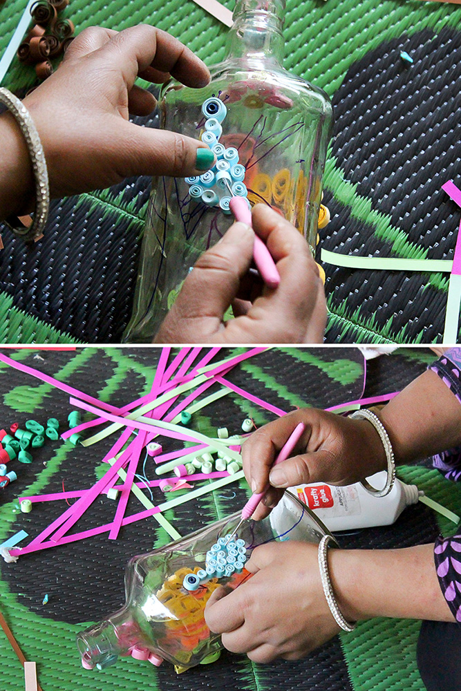 Home / Resources / Paper Quilling Work - Himachal Pradesh / Making Process / Glass Bottle Quilling Art