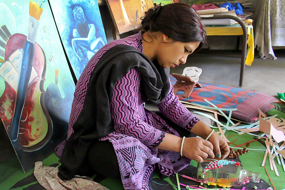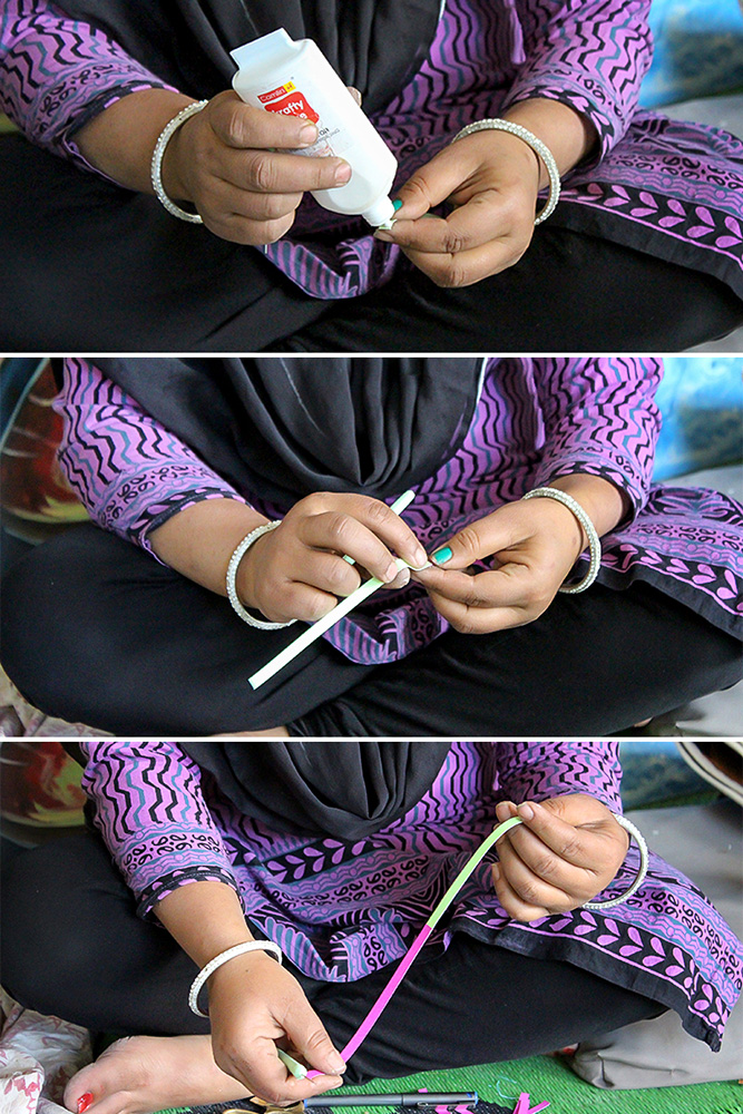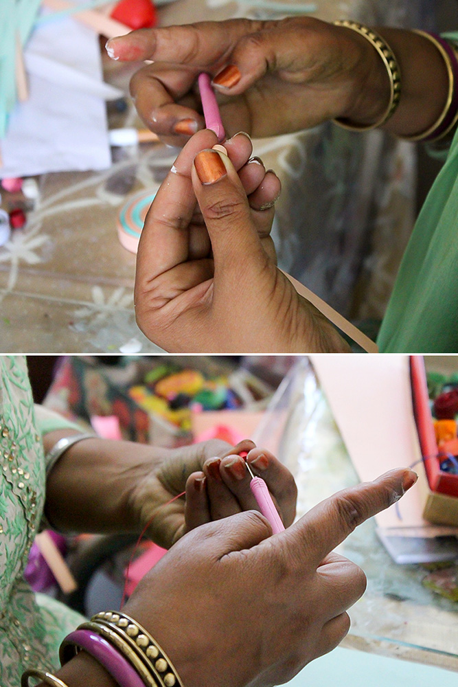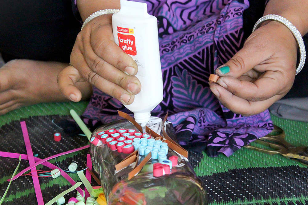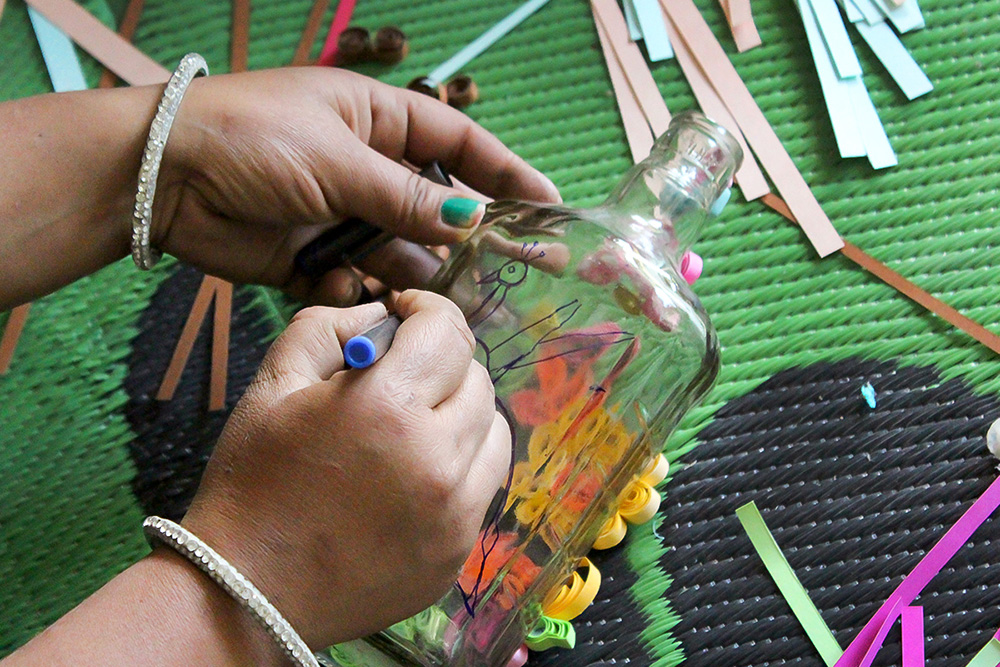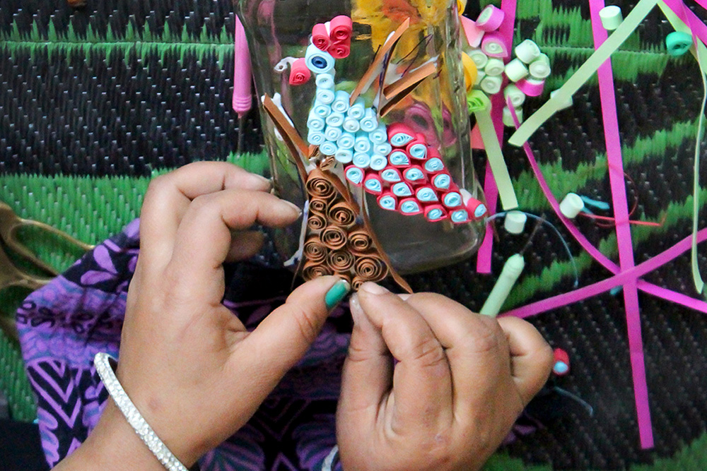 Home / Resources / Paper Quilling Work - Himachal Pradesh / Making Process / Glass Bottle Quilling Art