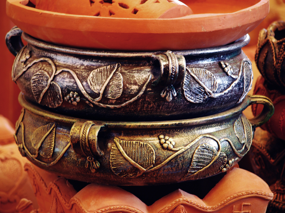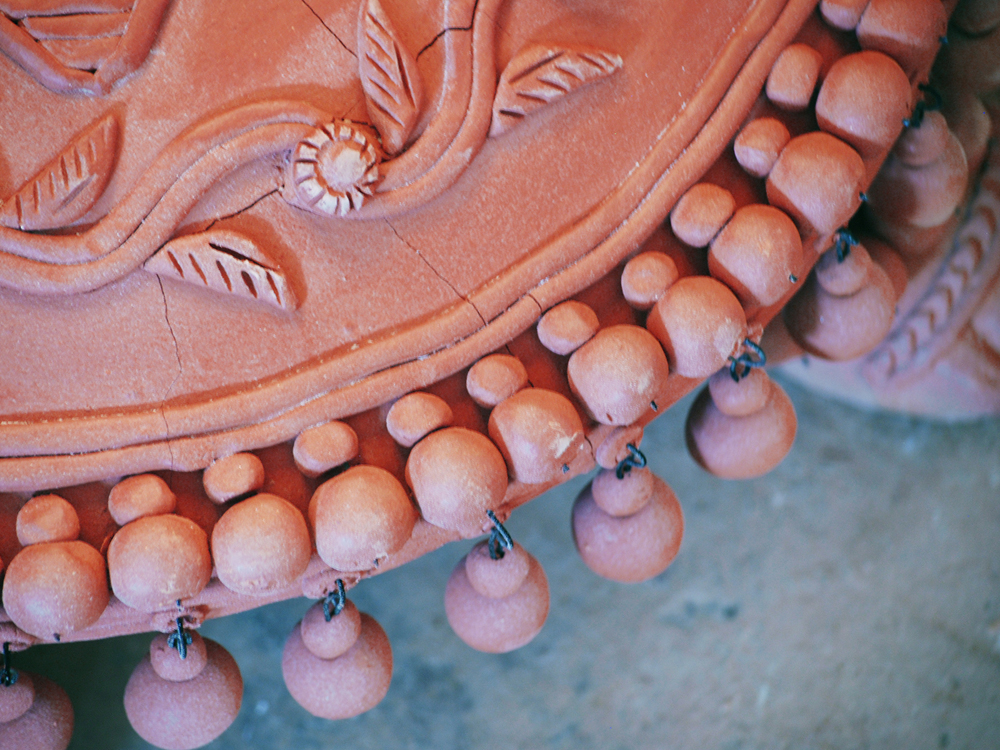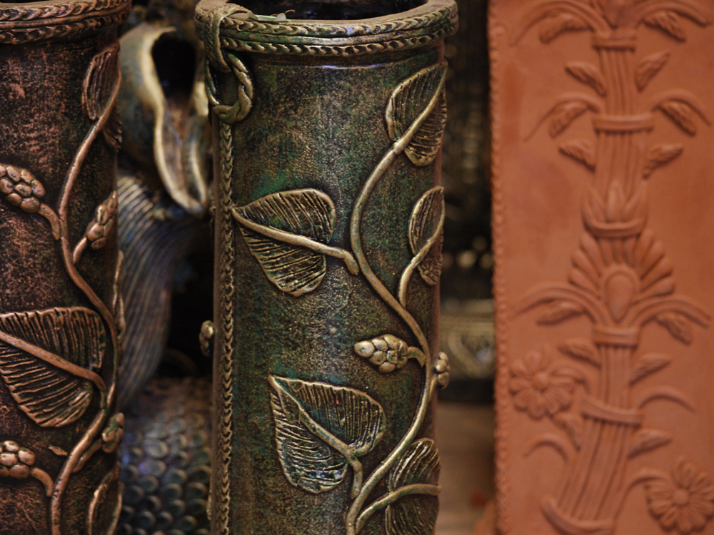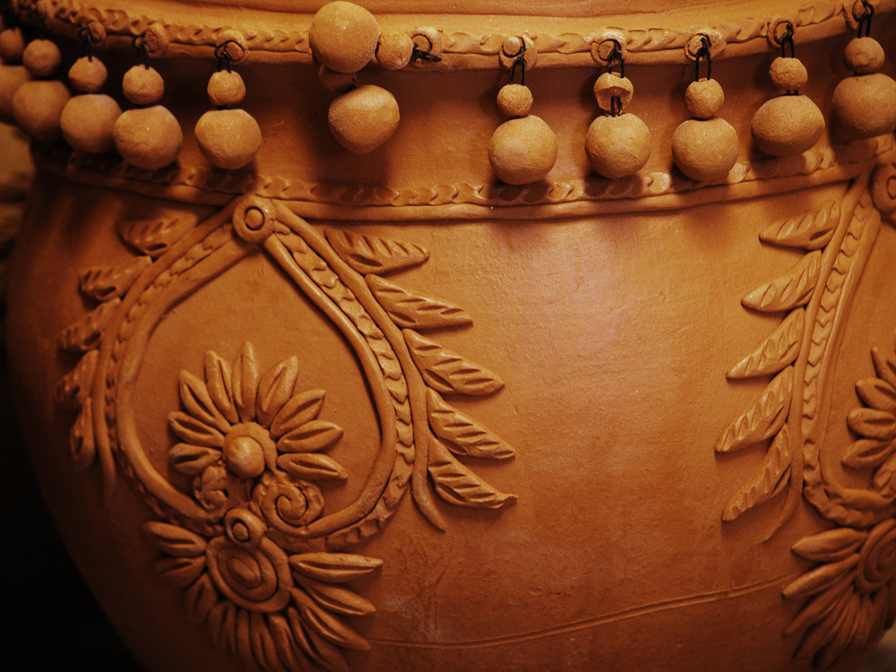 This is another recurring shape carved on the surface of the objects. A creeper runs along with forms of leaves and fruits attached on both sides. This pattern is also observed in most of the models.