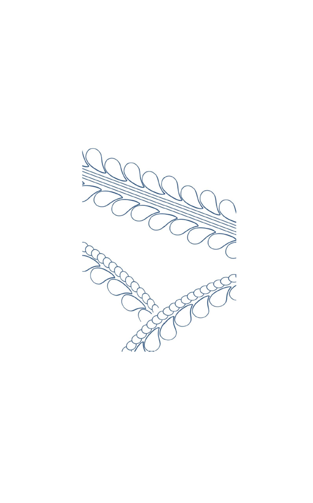 Another recurring pattern is the comma shaped design running along a thread either on one side or both. This pattern is used in either borders or lines that are needed to be defined.