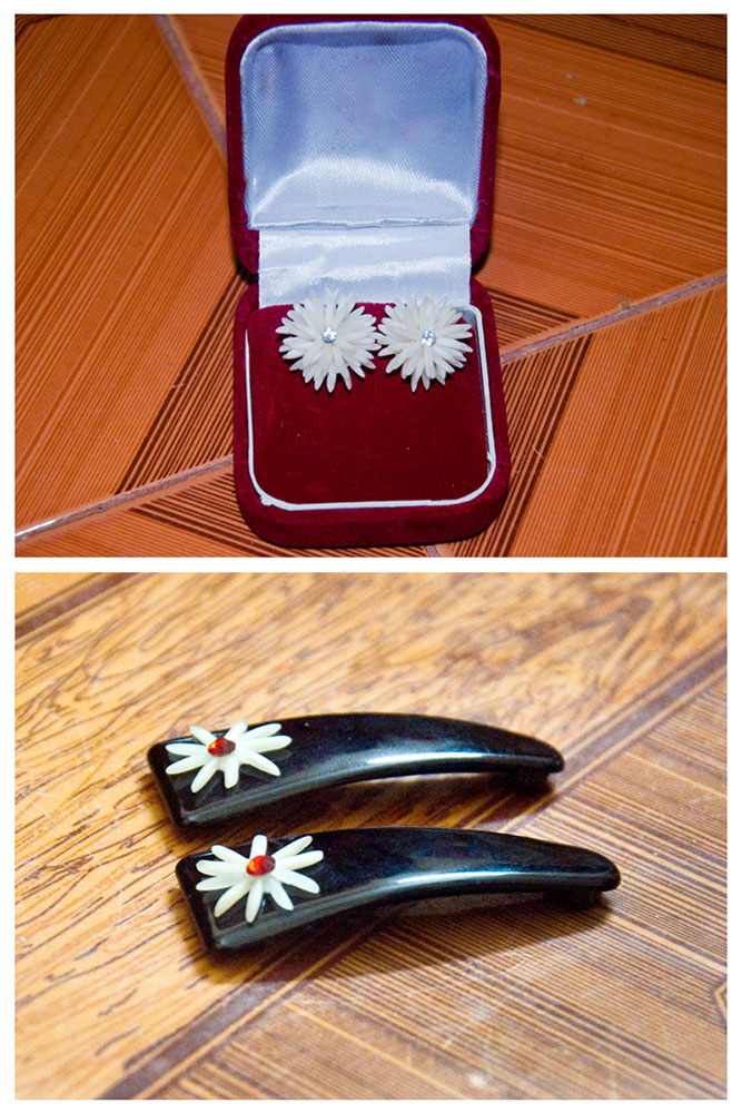 Selecting the cleaned and collecting the evenly lengthier rice grain individually initiates the process of rice jewelry making. The plastic eyes that are used for making stuff toys are bought from the local market and used here. The upper bulge glossy eyelid area is separated from its black hard stud attached to its back in those plastic eyes. These black studs are used as the back support for the rice stud earrings. On the black hard stud of the plastic eye, the fabric glue is applied and the glue is spread evenly all over the stud. Rice grain is then stuck to the black stud one by one, by leaving empty space in the middle of the glued region. As the first layer of rice grain sticking gets completed again the middle region of the earring is applied glue and the second layer of rice grain is stuck to it. Likewise even the third layer of rice grain is stuck and the center area of the earring is glued. On that the pearl or the colored beads are stuck to make the earring look more attractive. The same procedure of sticking the rice grain is followed on the hairclips to decorate it as per the design. Using the similar methodology of decorating the hairclips and making the earrings are done by using other grains and pulses like wheat, paddy, elachi and etc. These earrings made of natural grains are also colored according to the customer’s demand!