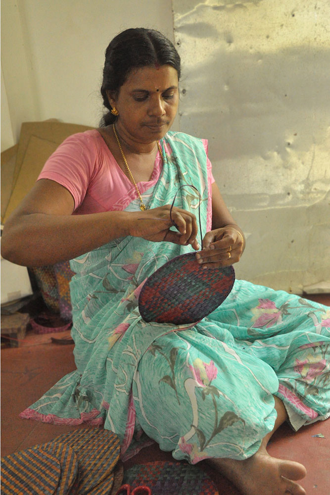 Screw pine craft at Thrissur – Thrissur a revenue district of Kerala is situated in the central part of the state. The place for its rich cultural heritage is called as cultural capital of Kerala. Talking of industries, Thrissur is well known for the power loom industry and textile mills. The coir industry offers employment for many. Likewise there are NGOs who have got support from government and help people to work using natural resource. One such NGO is Kottapuram Integrated Development Society (KIDS). It coordinates and is working hard to develop communities, especially the poor and sidelined, by integrating all the elements and resources of the community. It was established in the year 1987. The organization is successfully working from 27yrs and its main focus is to empower women. They train artisans and help them come up with their own designs for the products simultaneously working on needed products. They use screw pine and water hyacinth. Products required for office and houses are produced. There are more than fifty varieties of products that are produced. There are 3 outlets in Kerala, Kodangallur, Mattancherry and Calicut where the marketing of these products takes place. There are 350 artisans who work all together. There are 11 centers. People who join this organization get an identity card that helps them with their children’s education and health. The main noted department is natural fibers. Around twenty to twenty-five women and physically challenged folks are given an opportunity to work under this organization.