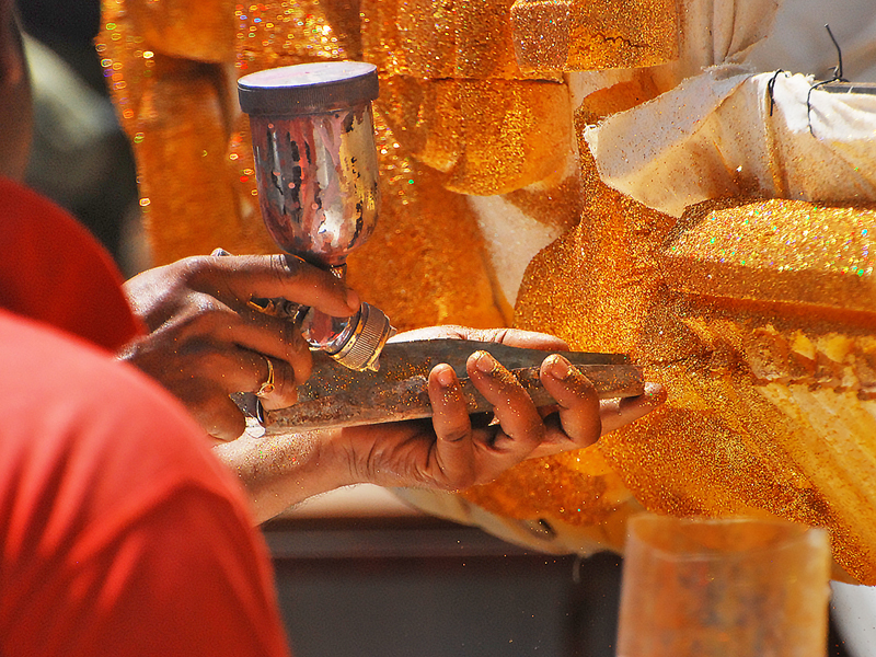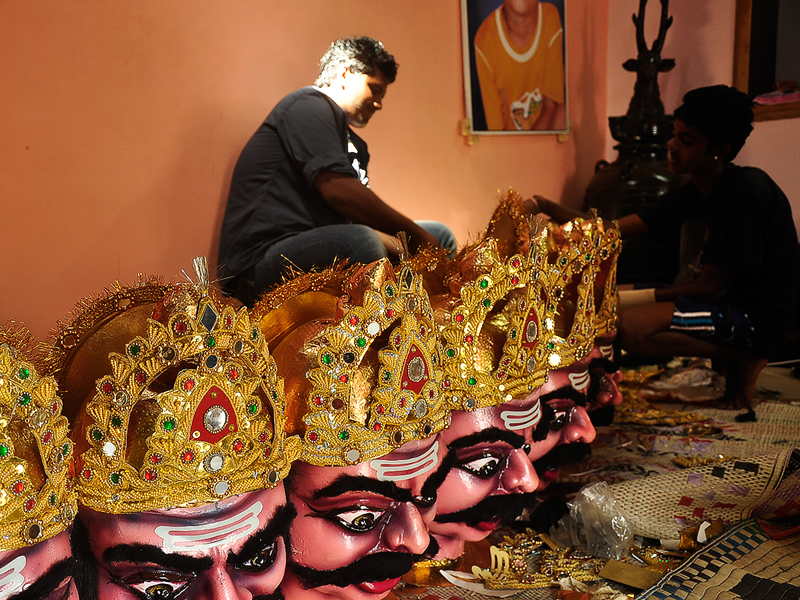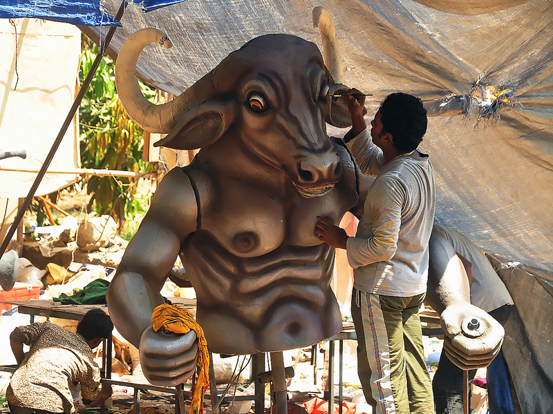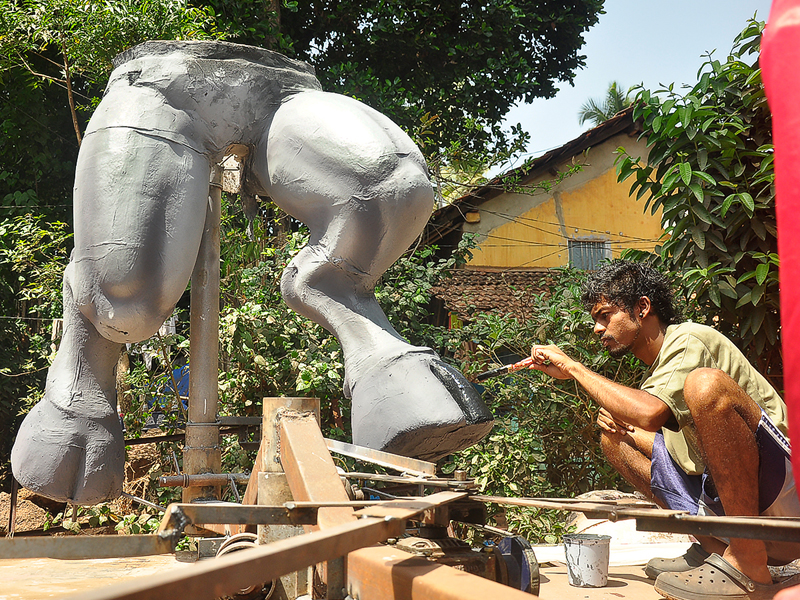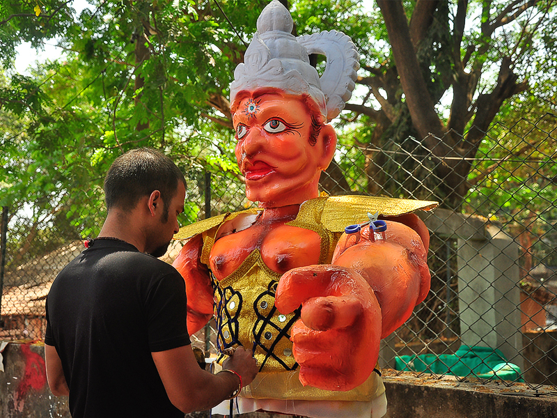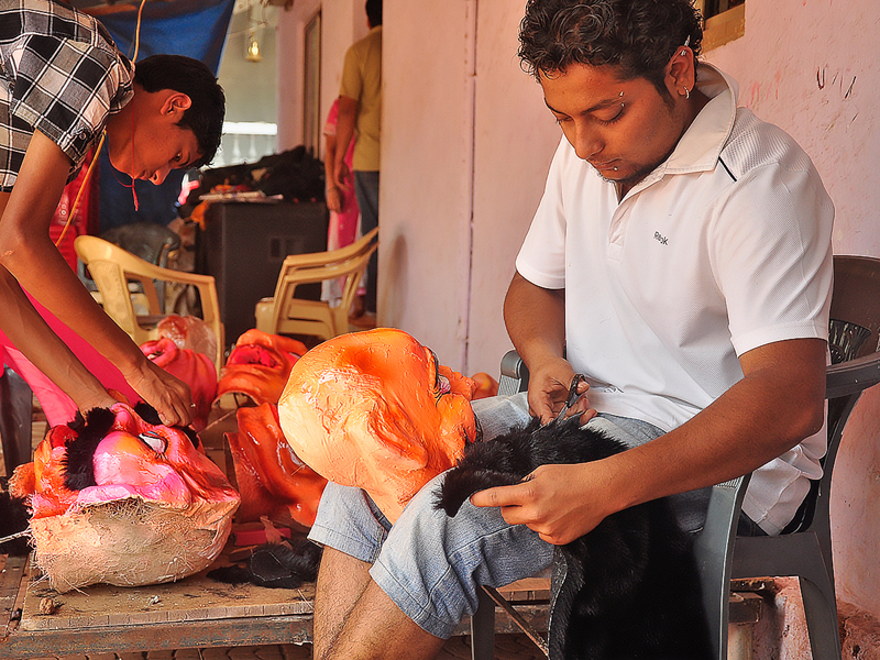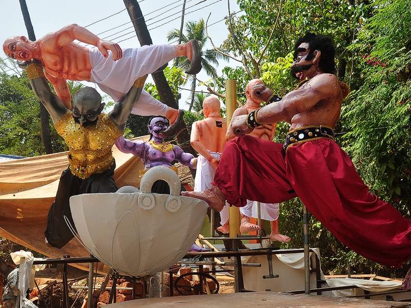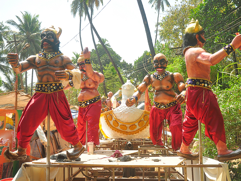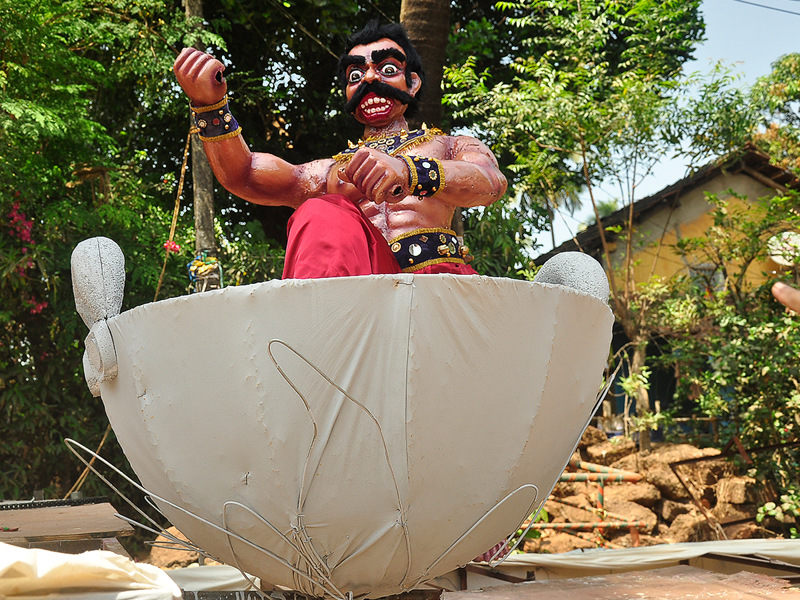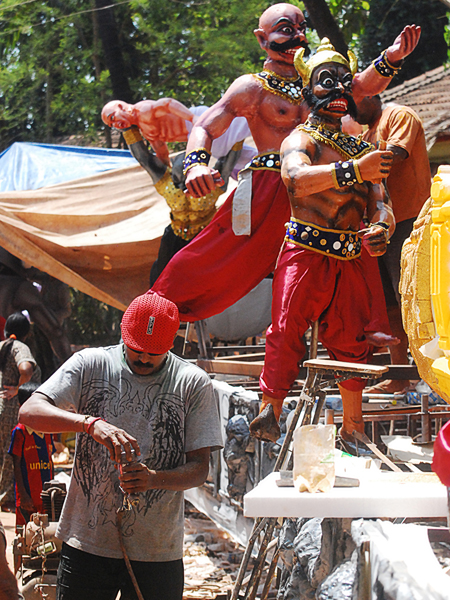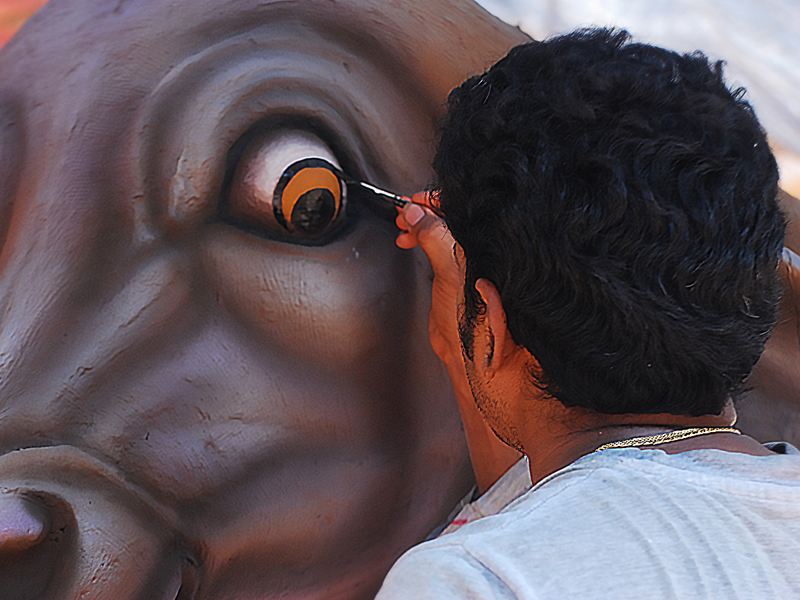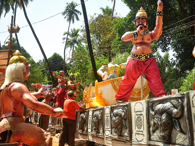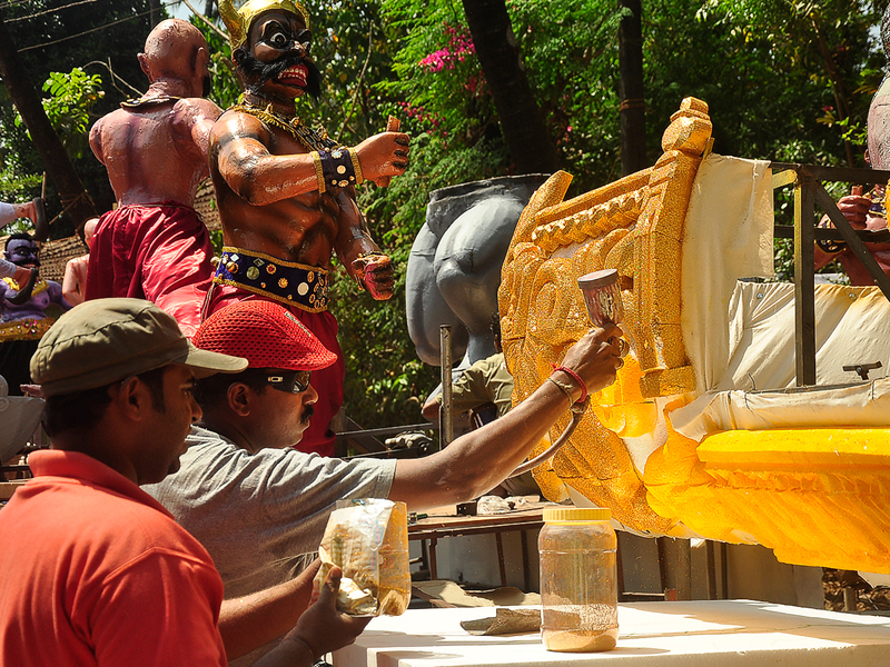 The creation of the floats and the puppets to participate in the parade begin much earlier. Artists put all their skills and ideations in the detailing of the characters exactly as mentioned in the Hindu mythology. The artists work hard to make it look attractive even by maintaining the real look and feel of the character. Use of plaster of Paris and polystyrene makes it light in weight that eases the movement of mobile puppets.
