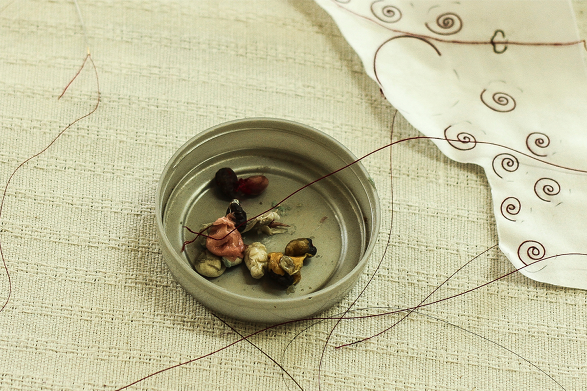 Thangka is a handmade art form and all other parts are done manually in making of applique Thangka. Most of the materials used for applique are procured from nature. Silk fabric and thread is brought from Varanasi (India), horse tail hair is bought from Mongolia. Below is the list of other tools and raw materials used: