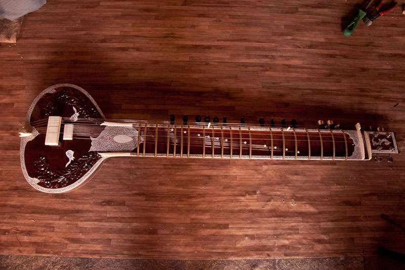 • Angurpatti: On this type of sitar the carvings of grape leaves are done on the neck and face of the sitar.