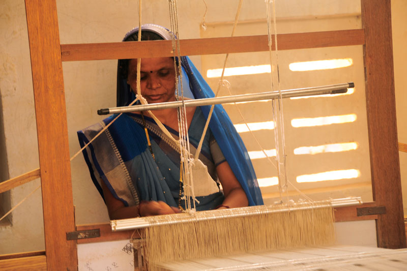 Vankar Dayalal Kudecha: He is a traditional weaver, practicing weaving in Bhujodi village, along with his family members. He graduated from Kalaraksha in 2008. His wife Veeru Ben helps him with the work.