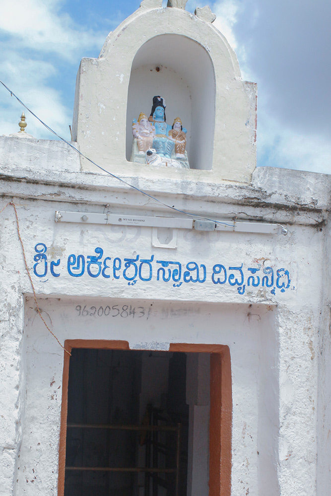 Arkeshwara temple is slightly isolated. The idols found in this temple apart from Arkeshwara Shivling are Bhairava, abhayangara linga and goddess Durga. The temple has a rock at the entrance with Vaastu yantra. It is believed that the deceased cows are cured when they are tied to this rock.