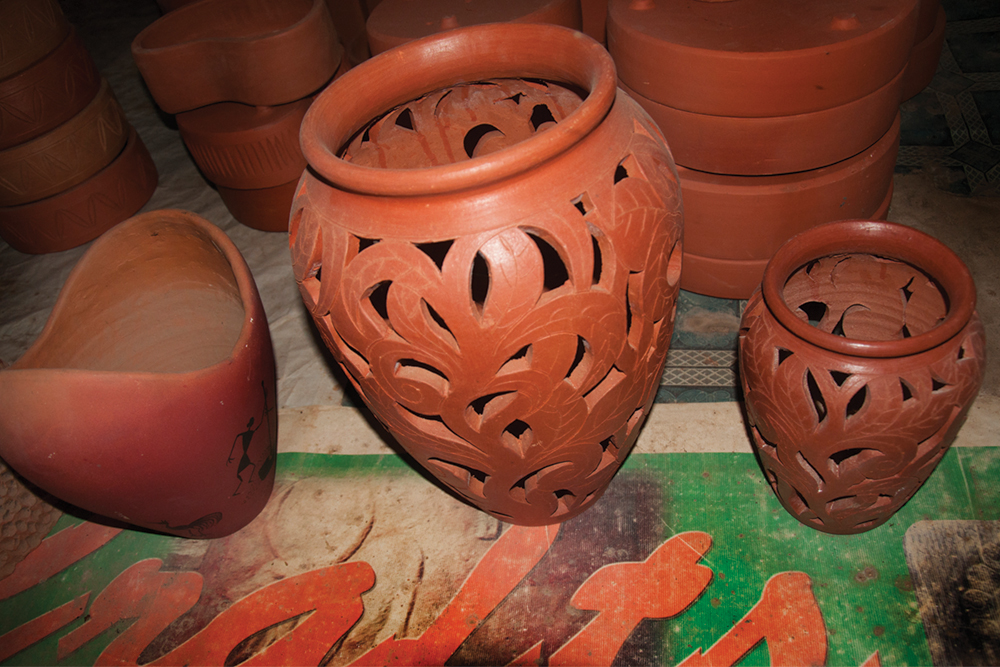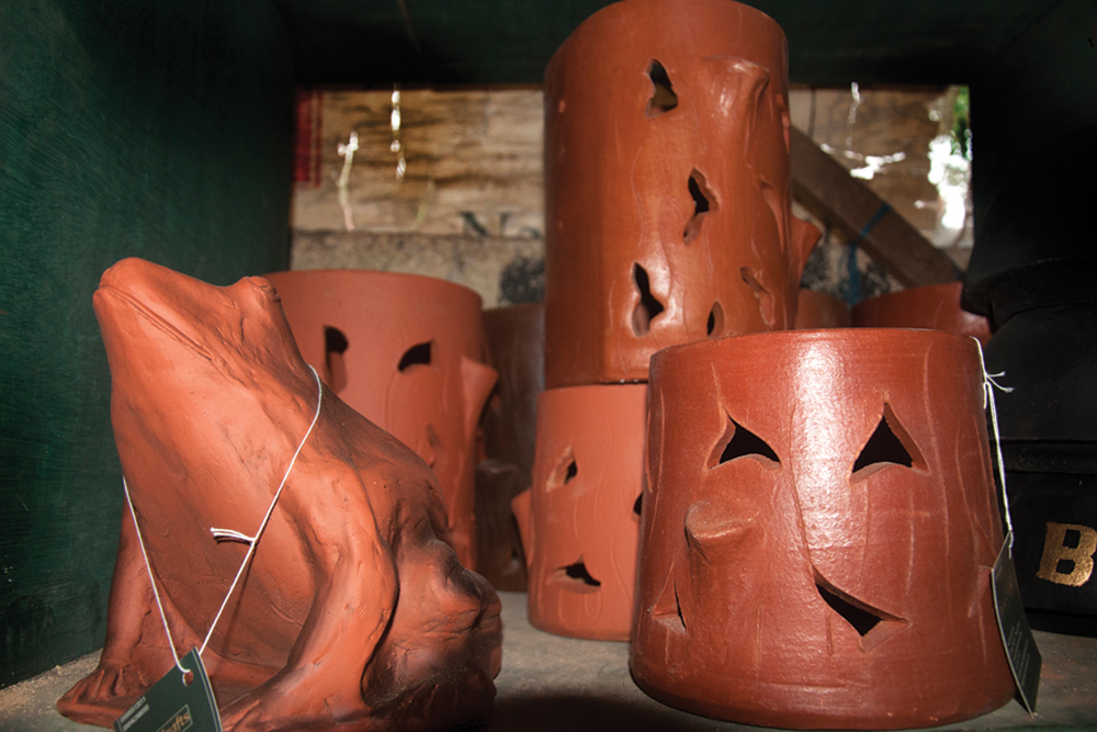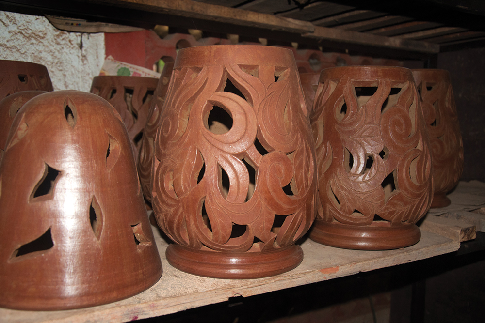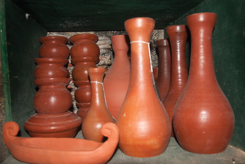 Clay products are prepared in various structures and decorative shapes. They create a wide range of clay products namely interior decoratives, planters, sculptures, vases, Murals, hotel utensils, candle stands, garden sculptures, jewellery and furniture. Each item differs in shape size and appearance. The cost of a terracotta item starts from INR 25/- and increases according to the size, shape and clay used in the objects. The bigger the object the larger the cost.