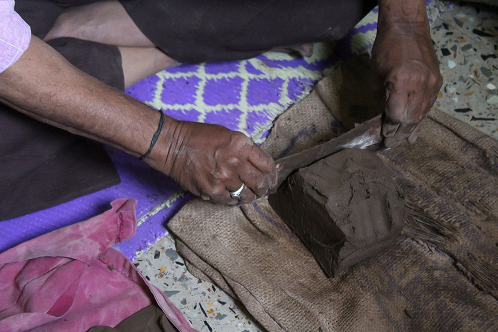 Pre-prepared terracotta horsehair and tail are attached towards the end of the process. It is taken care that the hair covers the back of its head, neck, and between its ears. Pointed objects like pens or other tools are used for engraving details, and enough water is applied before the clay sets, to avoid breakage. Once the intended structure is ready, it is left for drying, followed by furnace heating to harden them. This step gives it immense durability. After hardening, these separately molded parts are assembled step by step from tail to head. At times, after seamed by mud, the craftsman does a last detailing and carvings to provide it a finishing touch.