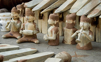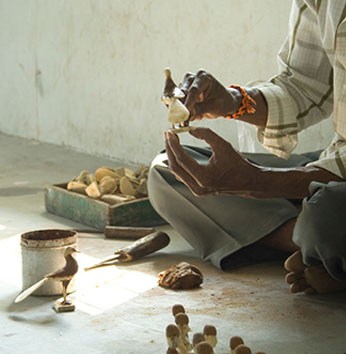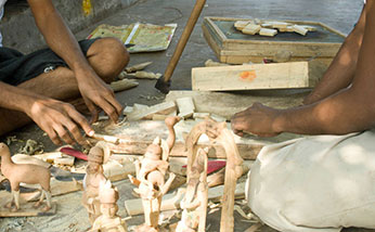 The skeleton of the toy after carving has rough and square edges. These edges are rounded to give the toy a smooth body by applying makku. This gives the final shape to the toy. This also conceals all signs and joints.