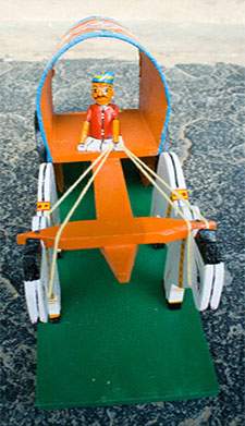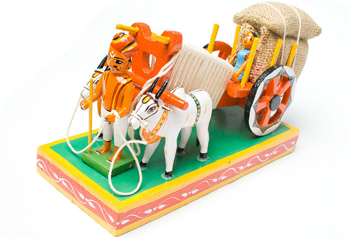 The Bullock cart is one of the toys which has evolved in terms of its design through the years. Both traditional carts with bulls in flat pieces of wood and the simple support system and the contemporary cart are the favourite among the people.