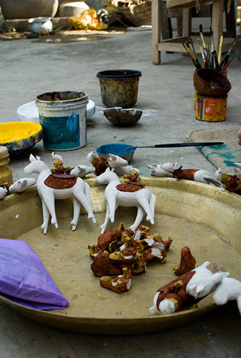 The Kondapalli craftsmen use this particular wood because this wood is soft, lightweight and can be easily carved. The wood is brought by the craftsmen from the nearby forests of Gangineni, Adlapadu, Konduru, Chevuturu and Madhavaram. Most of the time, instead of cutting down the entire tree, they just cut the branches so that the tree develops the branches again and the wood is available for more time.