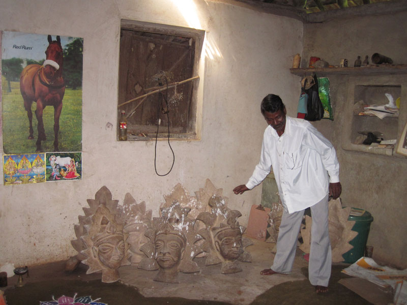 Sharavan Gavit from Kalidaund village is a mask maker who makes only traditional masks. He has been making these masks since the past 25 years and pursued them as a hobby. He earns his living by working in a workshop as an instructor for making wooden handicraft products. He is married and has two children.