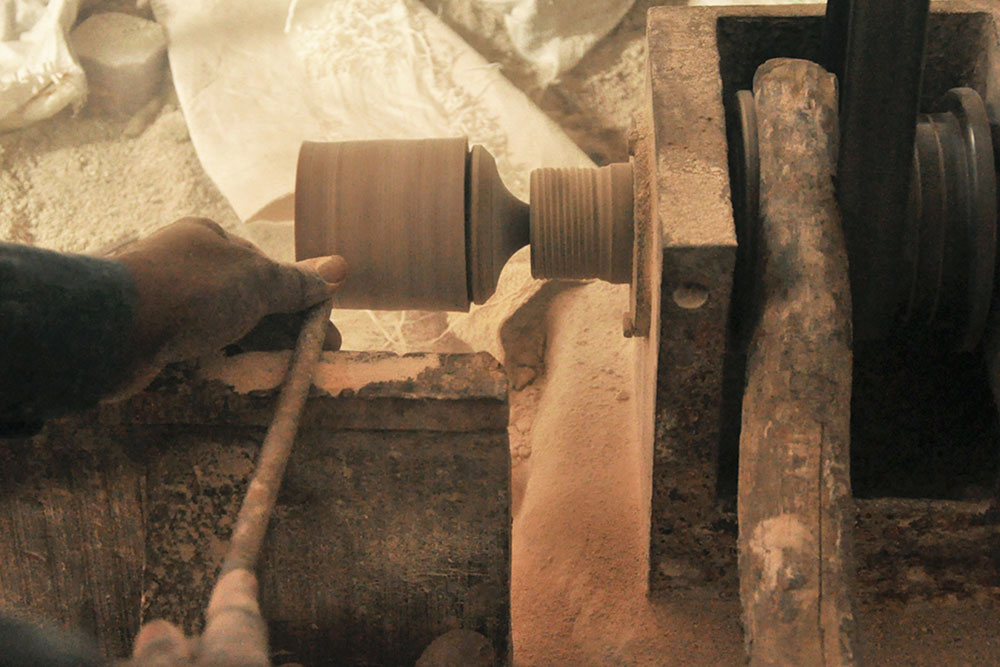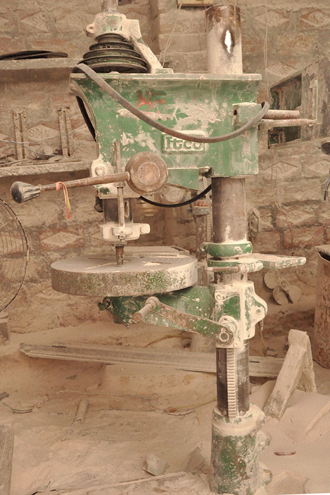 • The Stone Cutting Machine: The stone is cut to desired shape with the help of stone cutting machine.