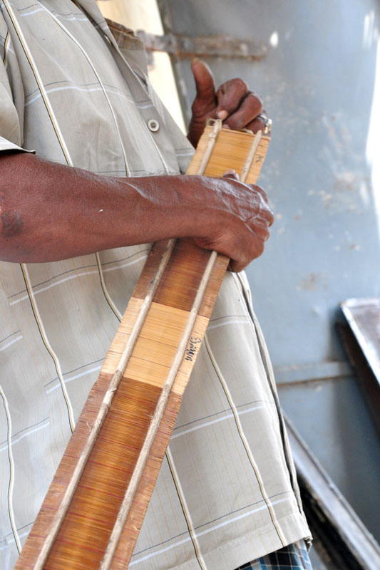 Most weavers have switched from bamboo to iron reeds as they last longer. The bamboo reeds while producing a more pliable, softer fabric tends to open up near the selvedges and needs fixing often.