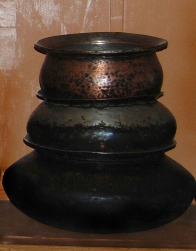 The utensils used are mostly made of metal, clay or powdered stones. The shapes of the vessels are typical hybrid of oriental forms & local craftsmanship known as ‘gara’.