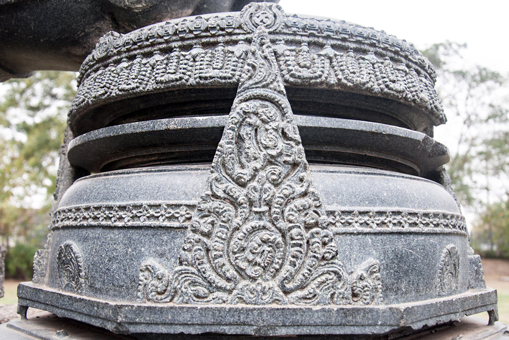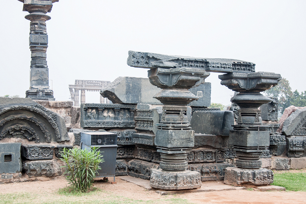 The famous Thousand-pillar temple is one of the best examples of Kakatiya architecture. It was built by Rudra Deva, at the slopes of Hanamakonda hill and it was dedicated to the Lord Shiva (Rudradeva), Lord Vishnu(Vasudeva) and Lord Sun(Suryadeva) in 1163 AD. This temple has the star shaped base and triple shrined (Trikutalaya). Though Shaivisam (devotion to lord Shiva) continued to be the religion of masses of kakatiya dynasty still intellectuals preferred the revival of Vedic rituals. They sought to reconcile the Vaishnavites (followers of lord Vishnu) and the Shaivites (followers of lord Shiva) through the worship of Harihara (combination of lord Vishnu and lord Shiva).This temple is known as Veyisthambala Gudi (thousand pillar temple) in local. As Rudra Deva built this, the temple is named after him as ‘Sri Rudreswara swamy temple’ with the presiding deity ‘Rudreswara’. This temple is built in the style of Chalukyan temple architecture. The decorations and the complexes of temple built during the time of Kakatiyas have a distinct style and technology exposing the impact of Kakatiya sculptor. One thousand, as the name indicates, these many pillars carved of various dimensions, which are perfect in symmetry and style. The exquisite icons, elephants, etc are also found in this ancient Dravidian temple. The structure of 6 feet monolithic black basalt Nandi is also placed at the entrance of the temple as the holy bull of Lord Shiva and the rock cut elephants are placed on either side of the main shrine. The temple also has amazingly carved doorways, ceilings with rich inscriptions. These pillars of the temple are of black stone are three-quarter reliefs carved intricately in geometric designs through which the finest hairbreadth can only be inserted into the holes of the delicately carved stone bangle.